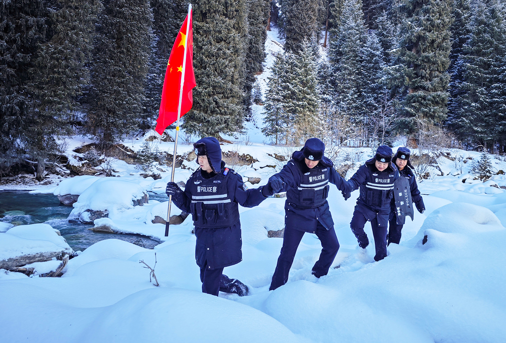 1月1日,駐守在邊境一線的新疆出入境邊防檢查總站伊犁邊境管理支隊(duì)洪土溝邊境檢查站民警組成“巡邏小分隊(duì)”,在海拔3200多米的邊境山林沿線巡邏踏查。
