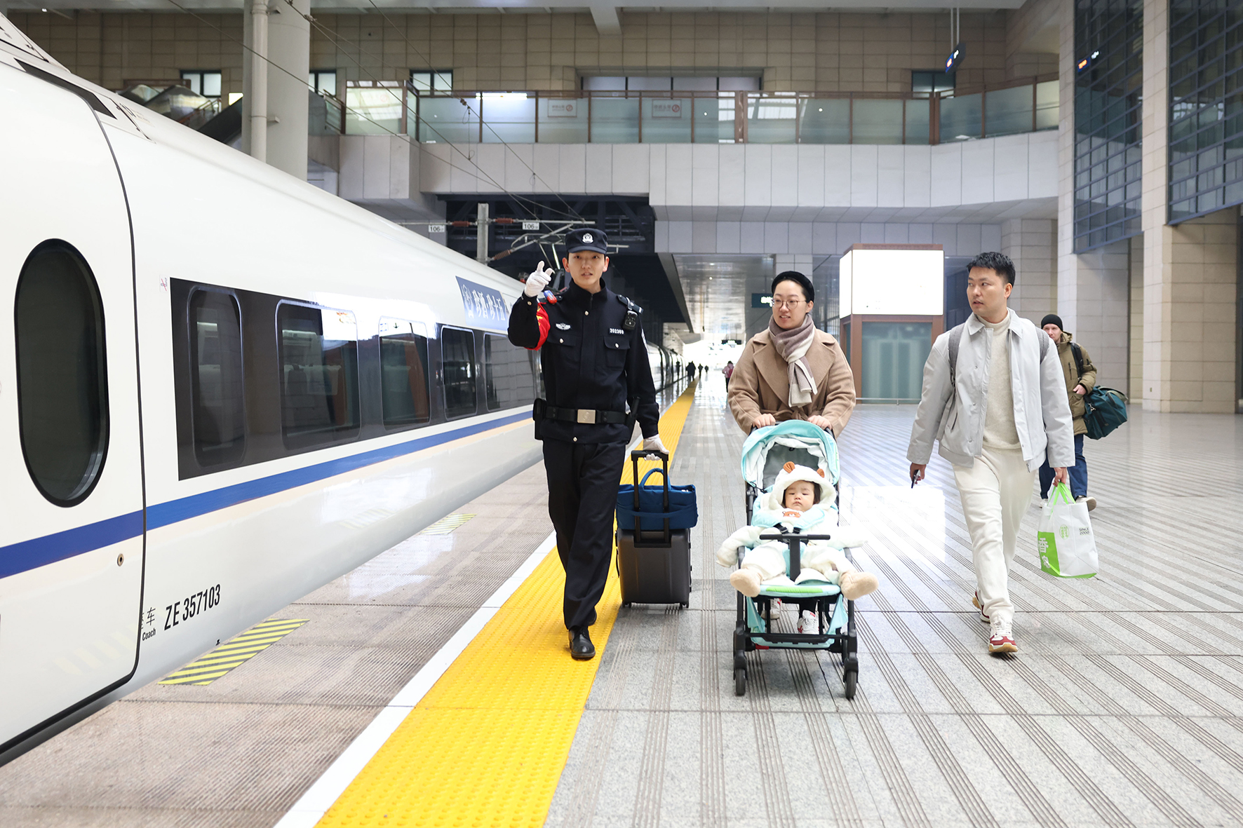 1月1日,西安站、西安北站迎來元旦小長假返程客流高峰。西安鐵路公安局西安公安處在進(jìn)站口、候車室、站臺等客流密集部位增派警力,最大限度提升“見警率”“管事率”。