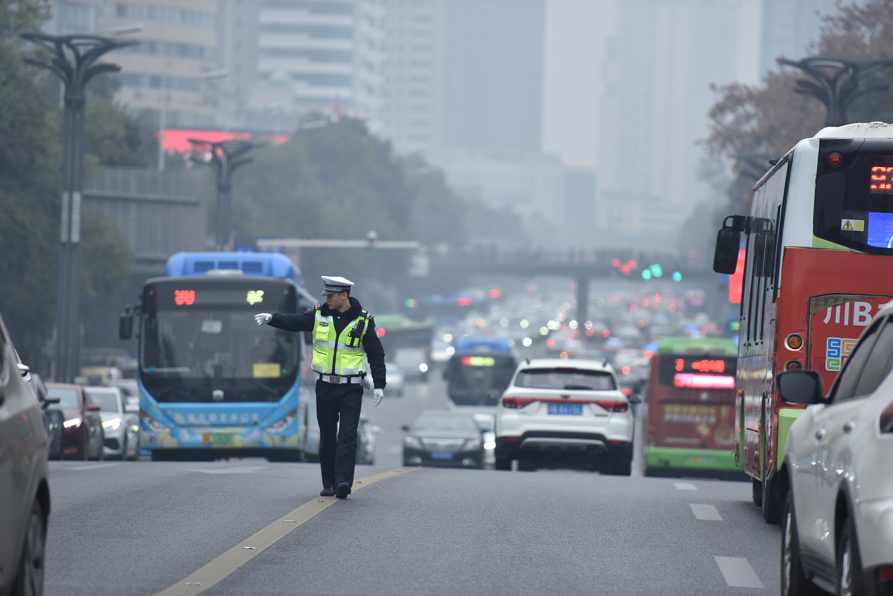 2023年12月31日,四川綿陽城區(qū)各商圈、繁華路段車流量加大。綿陽市公安局交警支隊(duì)直屬一大隊(duì)迅速調(diào)整和增加警力,采取管制、分流和提高通行效率等措施,確保道路的通暢。
