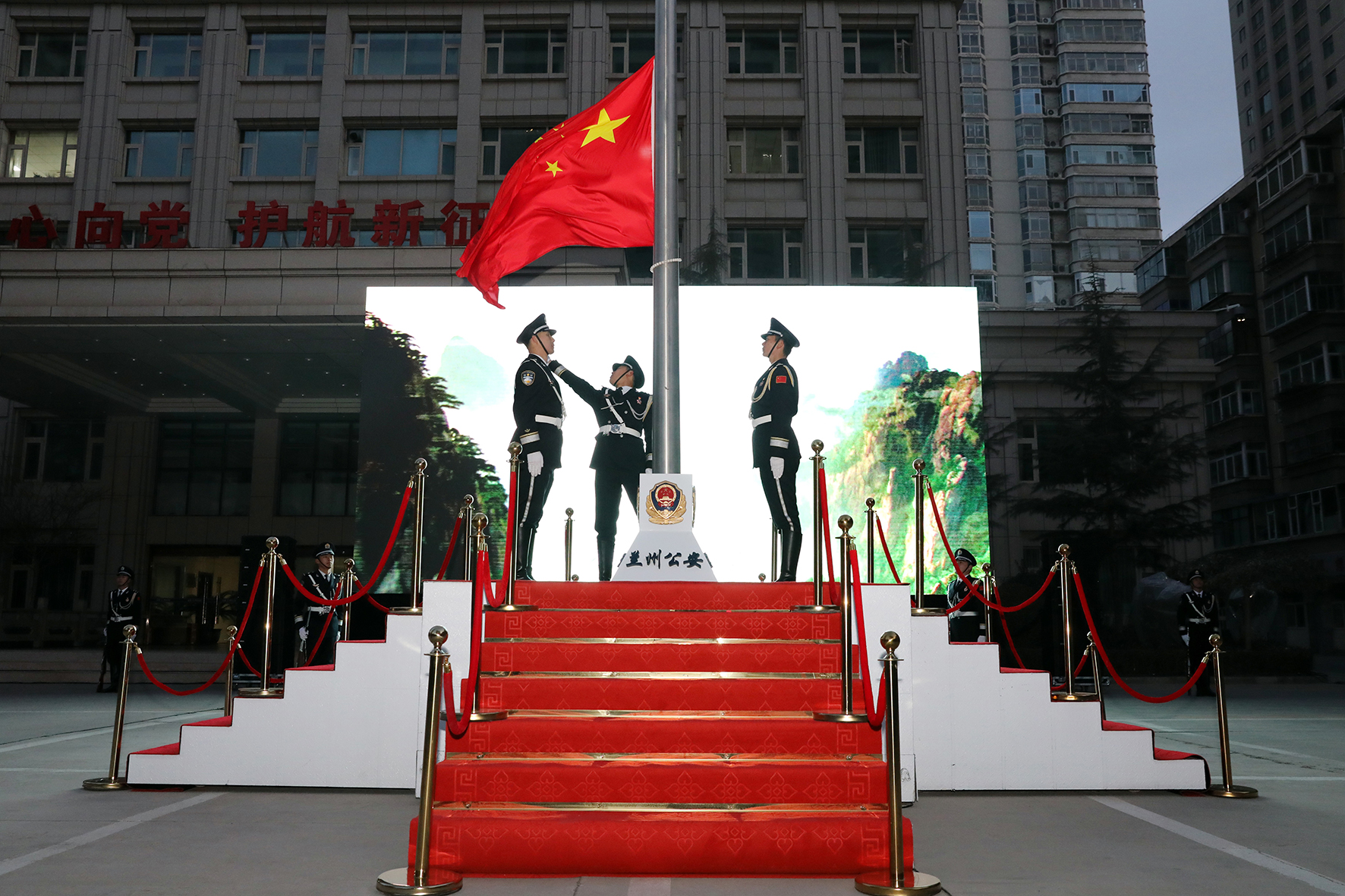 1月1日,甘肅省蘭州市公安局隆重舉行新年升國旗儀式。同時(shí),還進(jìn)行了新警授銜整裝儀式,為6名新警代表頒發(fā)授銜證書。