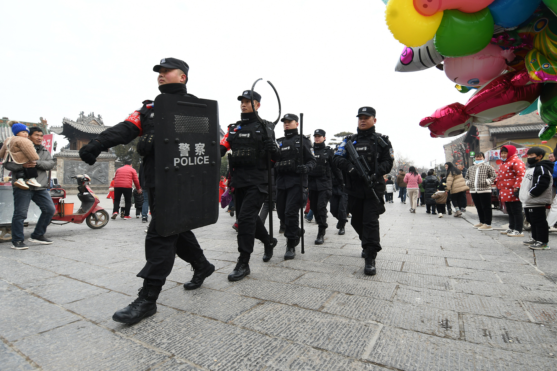 1月1日,河南省??h公安局巡特警大隊(duì)民輔警在古城景區(qū)執(zhí)勤巡邏。
