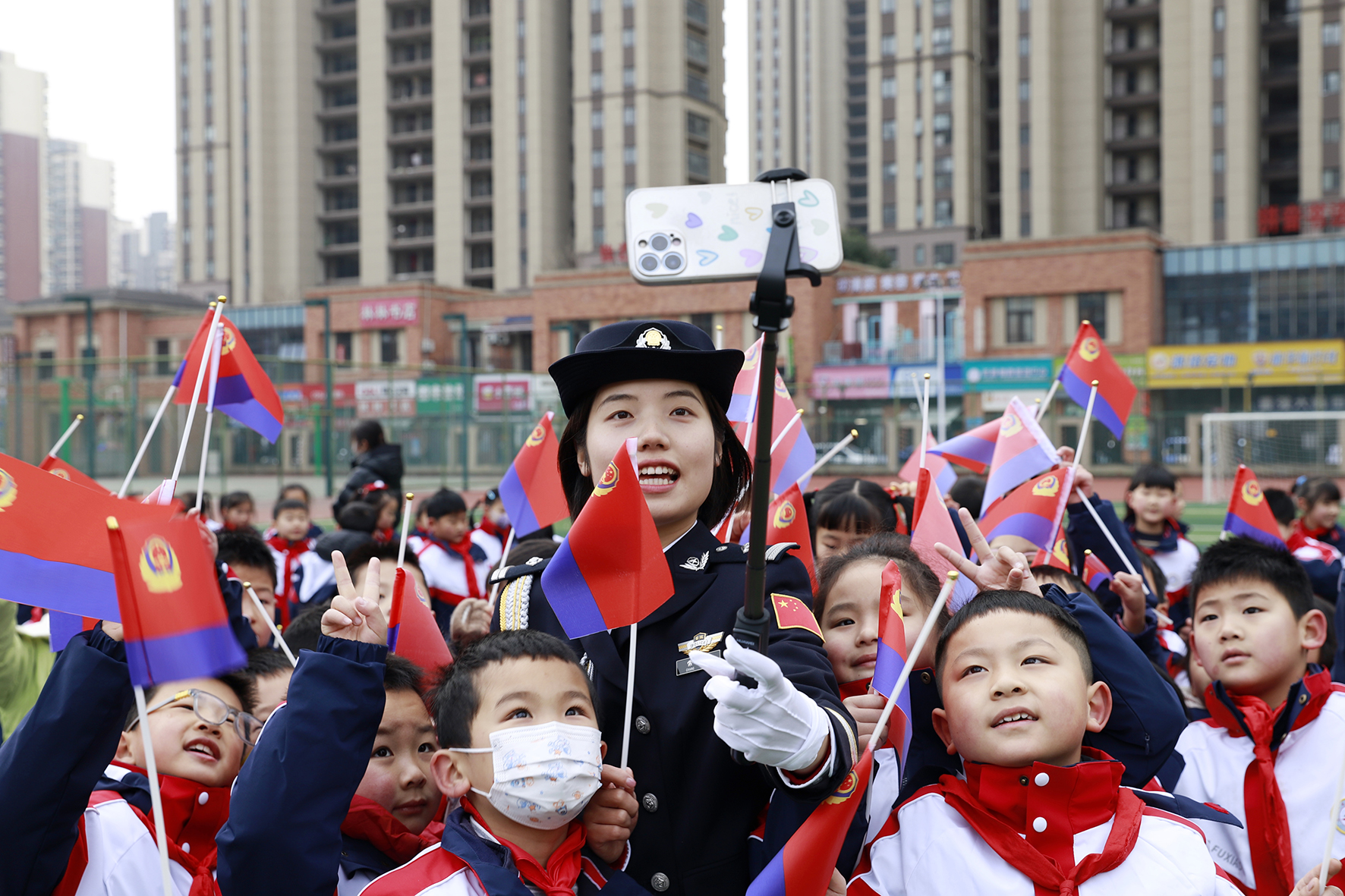 1月7日,山東省臨沂市郯城縣公安局開展我與警旗合影主題活動(dòng)。