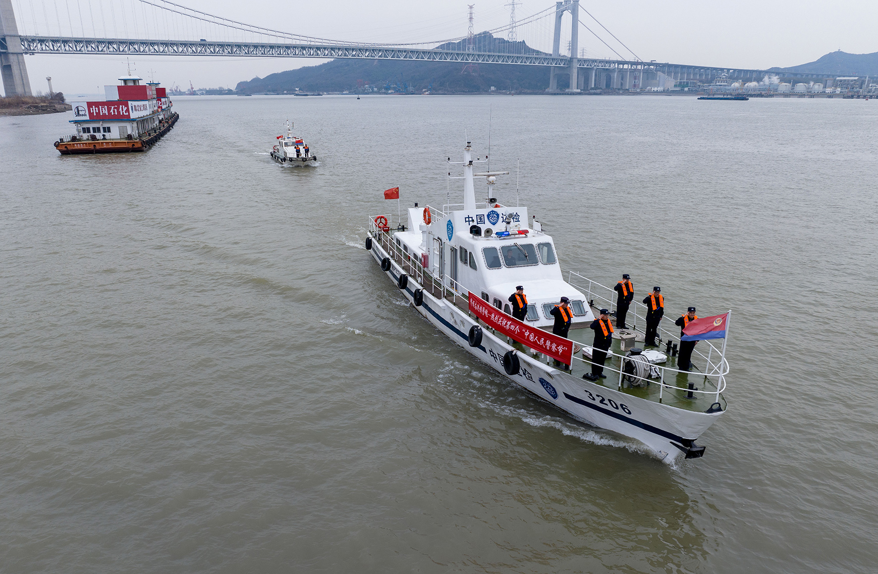 1月8日,鎮(zhèn)江出入境邊防檢查站民警聯(lián)合長(zhǎng)江航運(yùn)公安局鎮(zhèn)江分局開展聯(lián)動(dòng)水上巡邏、向警旗敬禮活動(dòng),以實(shí)際行動(dòng)向中國(guó)人民警察節(jié)獻(xiàn)禮。