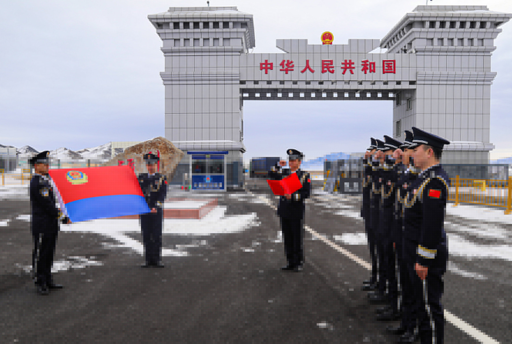 1月7日,新疆出入境邊防檢查總站阿勒泰邊境管理支隊(duì)塔克什肯口岸邊境派出所與塘巴勒邊境檢查站的移民管理警察開展“守衛(wèi)國(guó)門邊境 重溫入警誓詞”活動(dòng)。