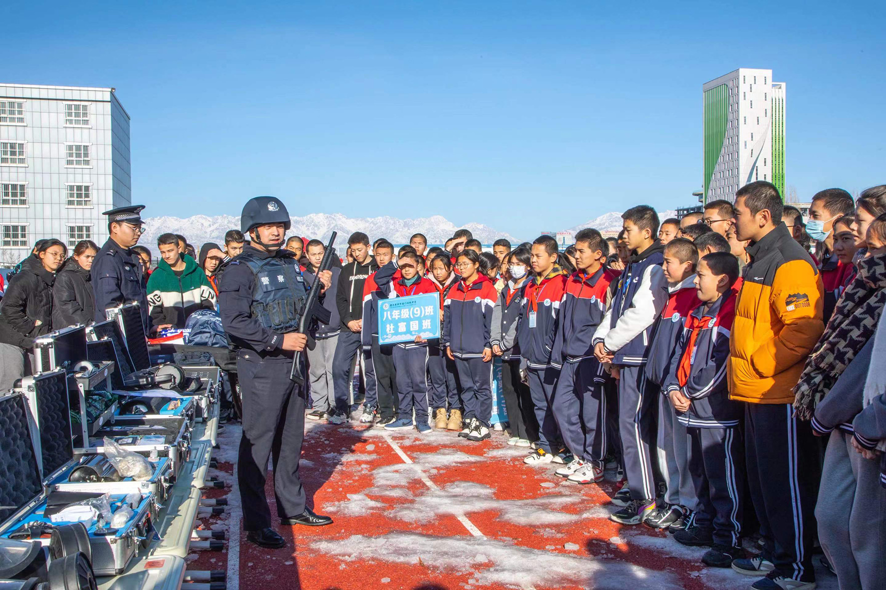 1月5日,新疆伊犁邊境管理支隊(duì)霍爾果斯口岸邊境派出所組織民警來到霍爾果斯國(guó)門初級(jí)中學(xué),開展“警營(yíng)開放進(jìn)校園”活動(dòng)。