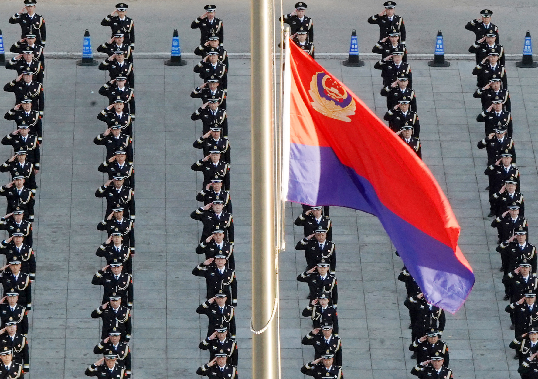 1月10日,四川省綿陽(yáng)市公安局,民警面朝警旗重溫入警誓詞。