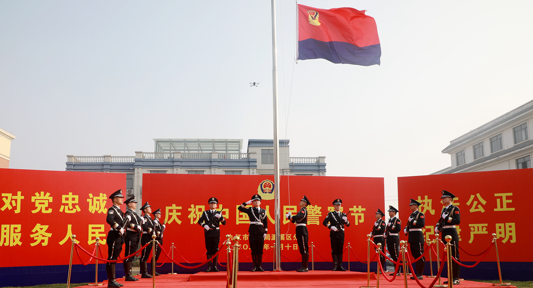 1月10,浙江省舟山市公安局舉行升警旗儀式,慶祝第四個(gè)中國(guó)人民警察節(jié)。