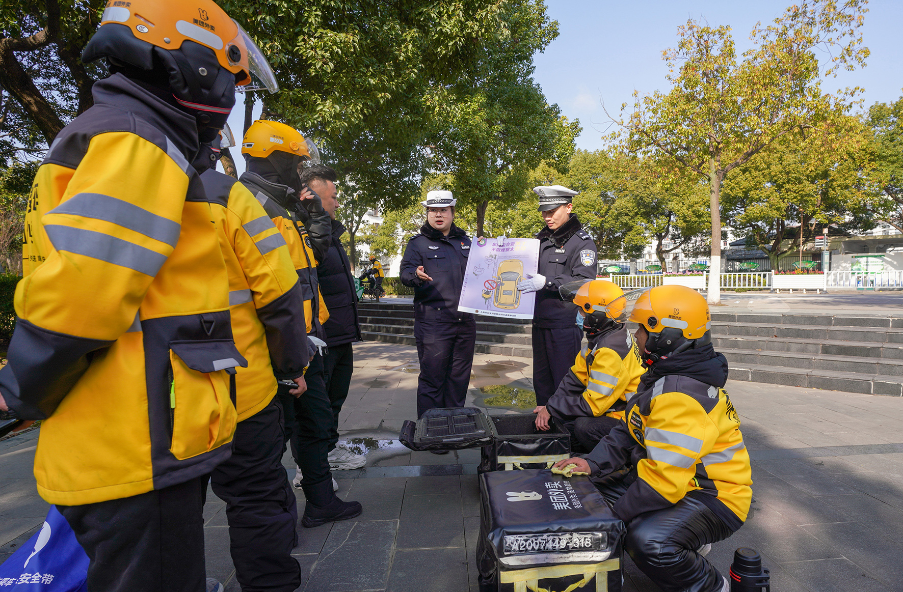 1月16日,上海市公安局崇明分局交警支隊民警來到轄區(qū)外賣員聚集地,開展了一場針對外賣騎手的交通安全宣講活動。
