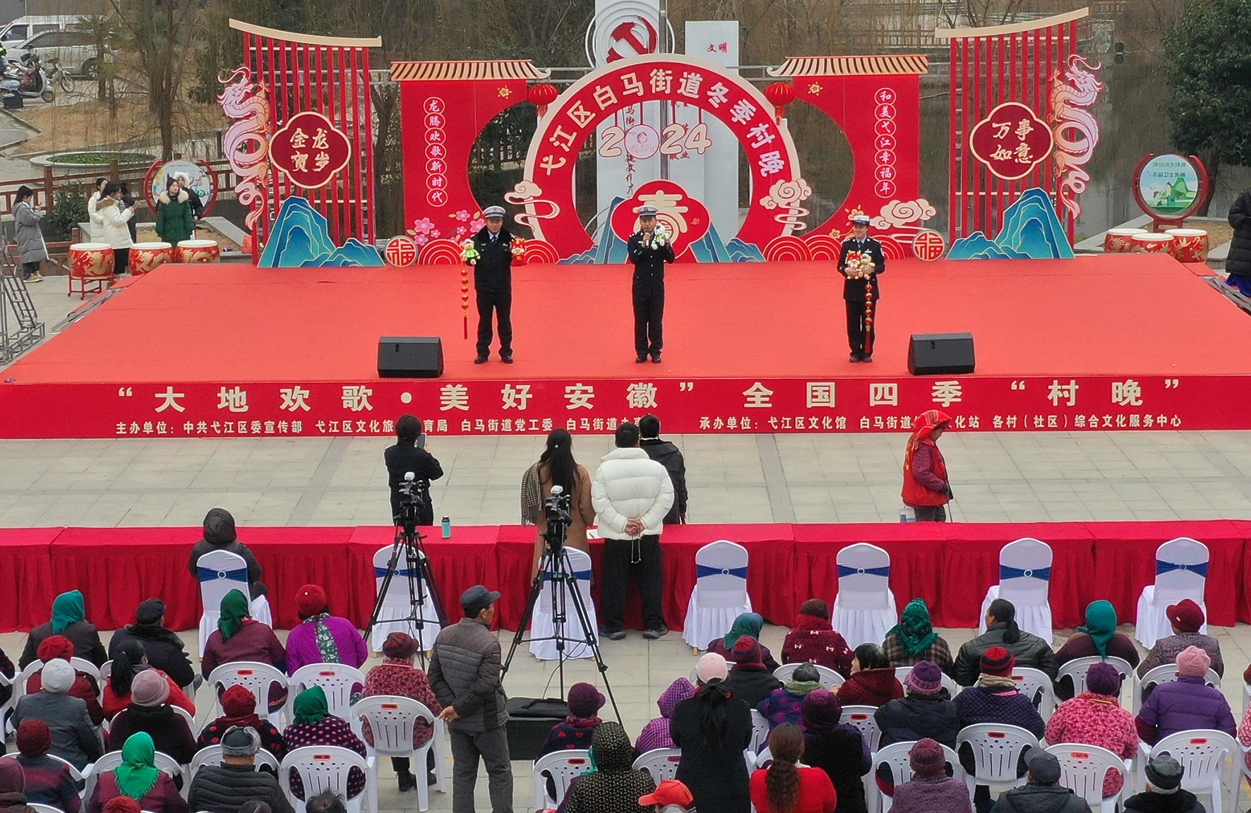1月17日,安徽省蕪湖市公安局交警支隊高速二大隊民警走進弋江區(qū)白馬街道冬季“村晚”現(xiàn)場,通過“交通知識你來答‘熊熊’‘火火’過大年”活動,向廣大群眾宣傳“一盔一帶”、高速公路安全行車等交通安全知識,共迎“春運”,共祝平安。