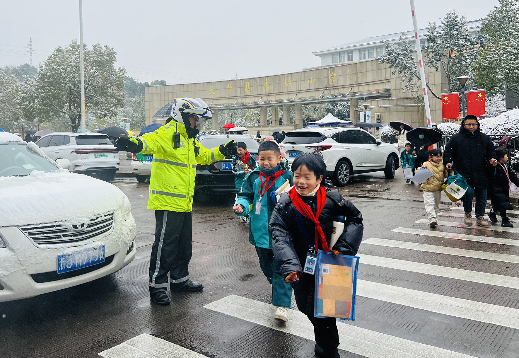 1月22日,浙江省臺州市天臺縣城區(qū)迎來入冬后首場降雪。天臺縣公安局交通警察大隊迅速開啟“護學(xué)模式”,增派護學(xué)崗警力,全力疏通上學(xué)高峰期交通秩序,保障師生出行安全。