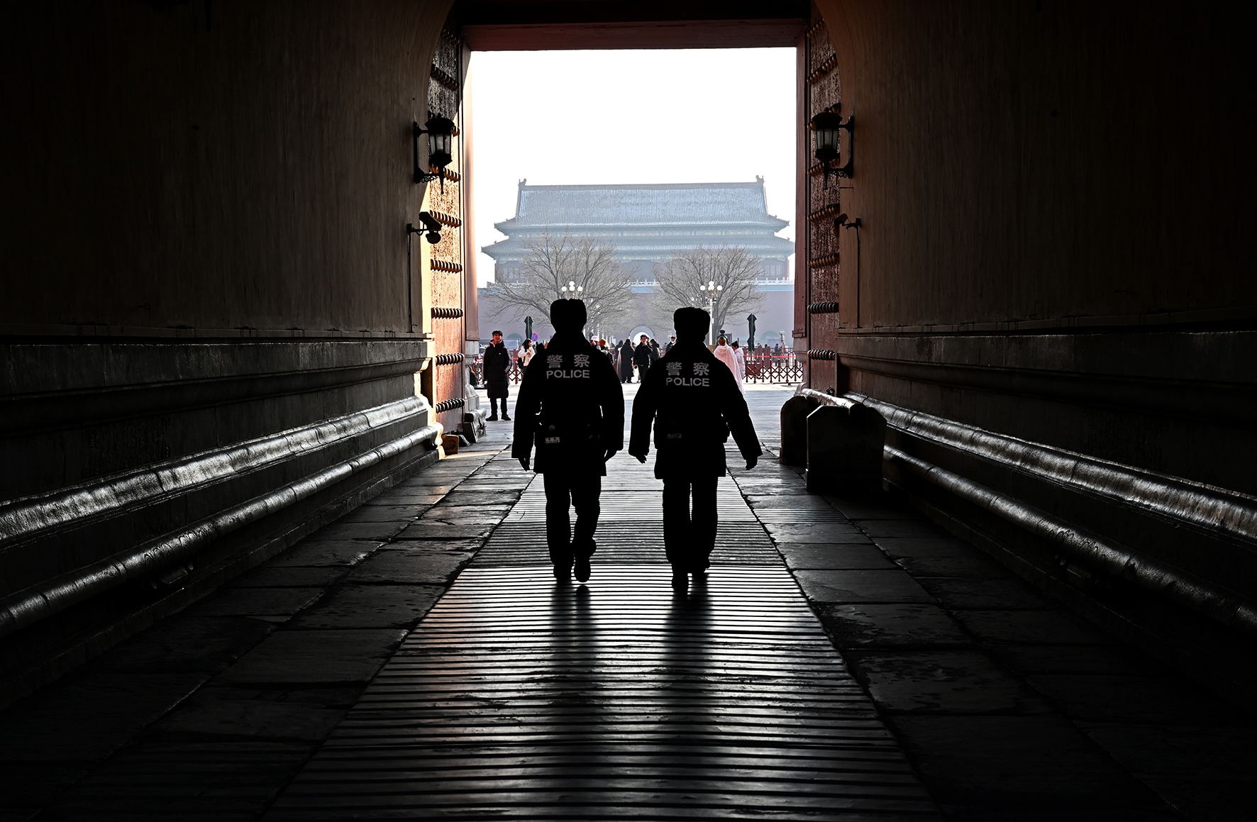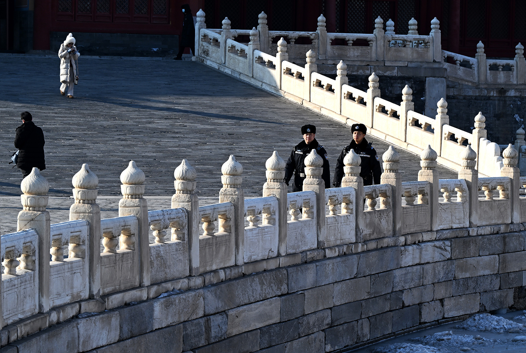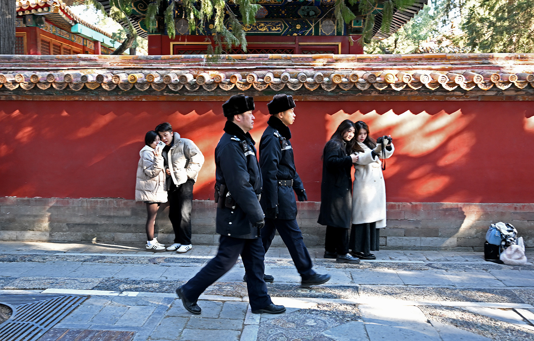 民警在金水橋一側(cè)的熙和門附近巡邏。故宮內(nèi)的各個門廊、殿宇以及角落都是民警日常巡邏的區(qū)域。