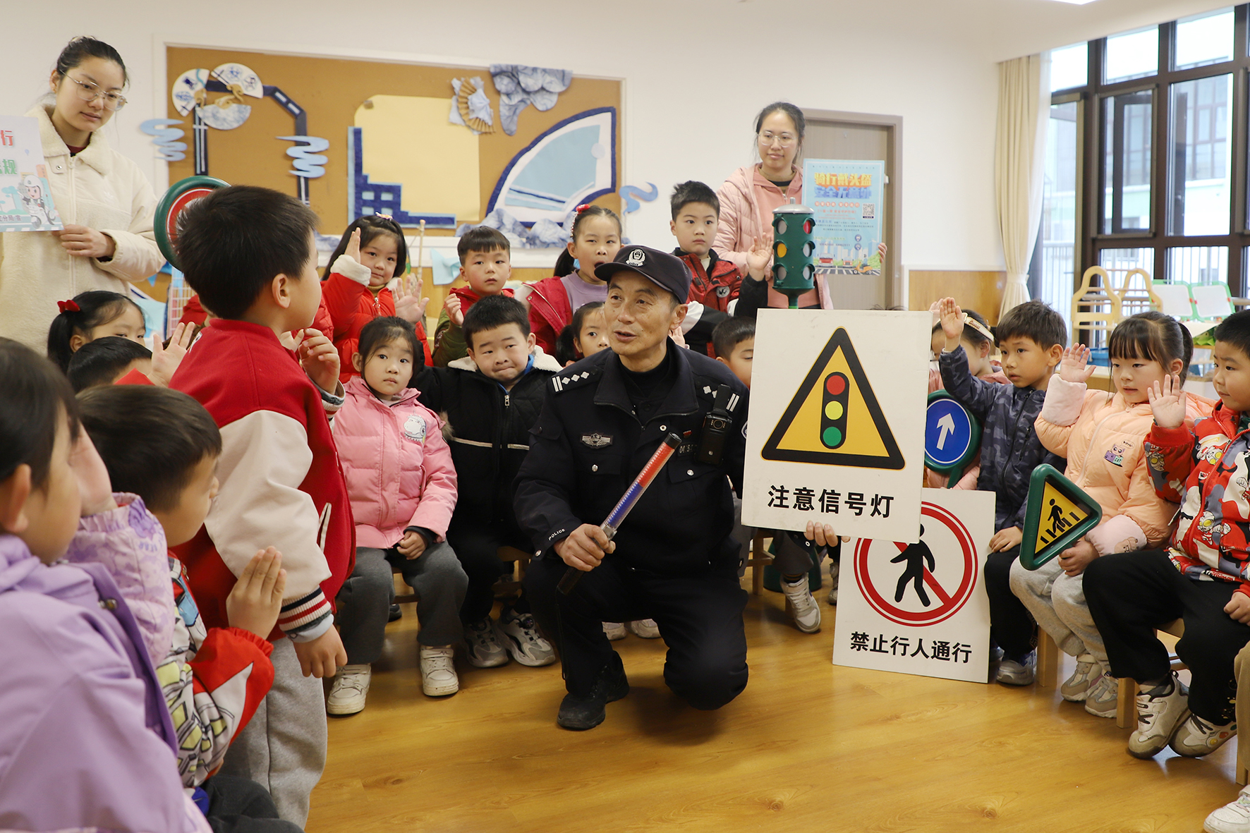 圖為民警通過趣味搶答讓小朋友學習交通安全知識。