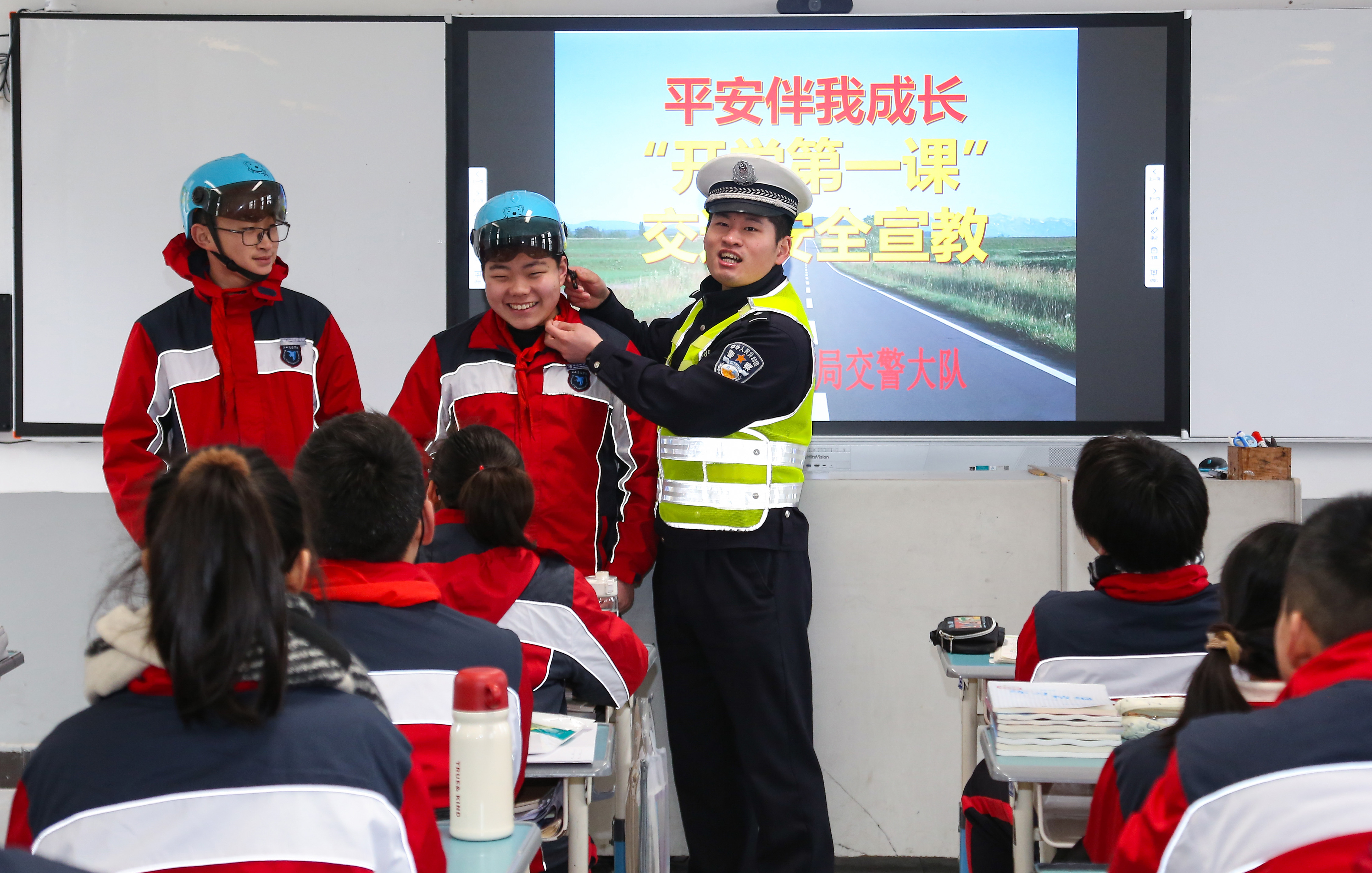 2月26日,浙江省岱山縣公安局交警大隊民警來到高亭鎮(zhèn)實驗學校,開展“平安伴我成長”開學第一課活動。