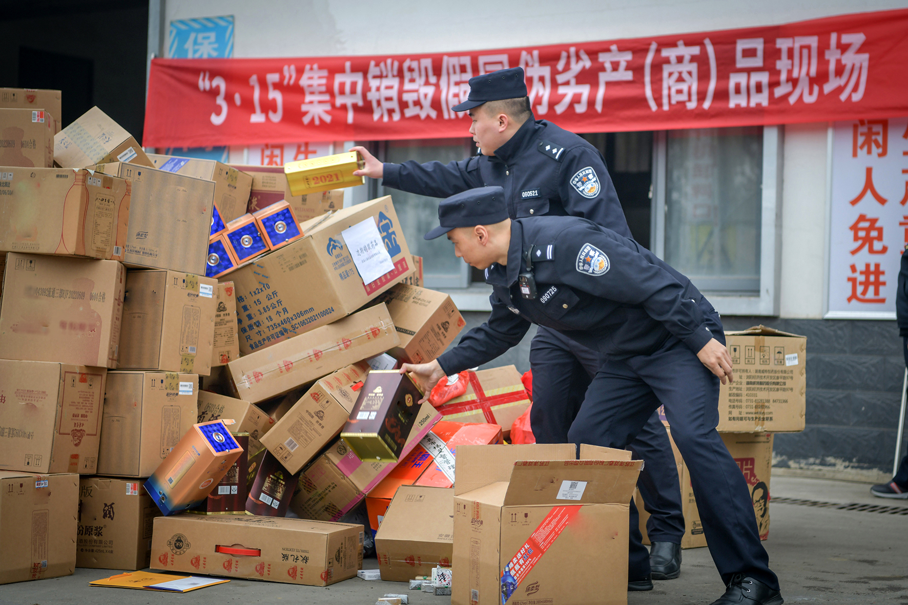 3月14日,安徽省涇縣公安局聯(lián)合市場(chǎng)監(jiān)管部門舉行偽劣產(chǎn)品集中銷毀活動(dòng)儀式,銷毀了去年以來(lái)查獲的涉案假冒香煙、藥品等。