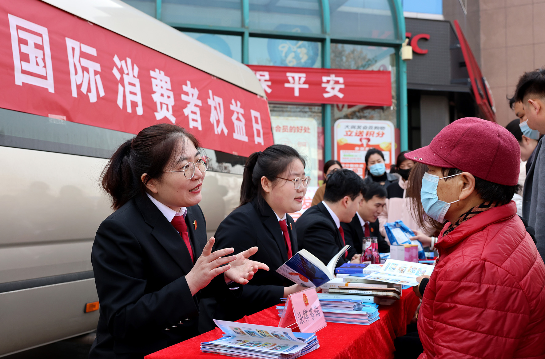 在“3?15”國(guó)際消費(fèi)者權(quán)益日來(lái)臨之際,3月14日,山東省棗莊市市中區(qū)人民法院知識(shí)產(chǎn)權(quán)庭的法官走向街頭開展主題宣傳活動(dòng),向市民普及知識(shí)產(chǎn)權(quán)法律知識(shí),維護(hù)消費(fèi)者合法權(quán)益,提高人們的消費(fèi)安全意識(shí)。