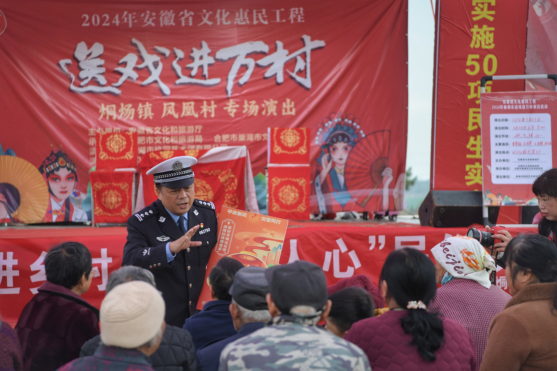 3月23日,安徽省巢湖市公安局交警大隊(duì)組織警力走進(jìn)農(nóng)村大戲臺(tái)、春游等地,開(kāi)展春季出行交通安全常識(shí)普及。