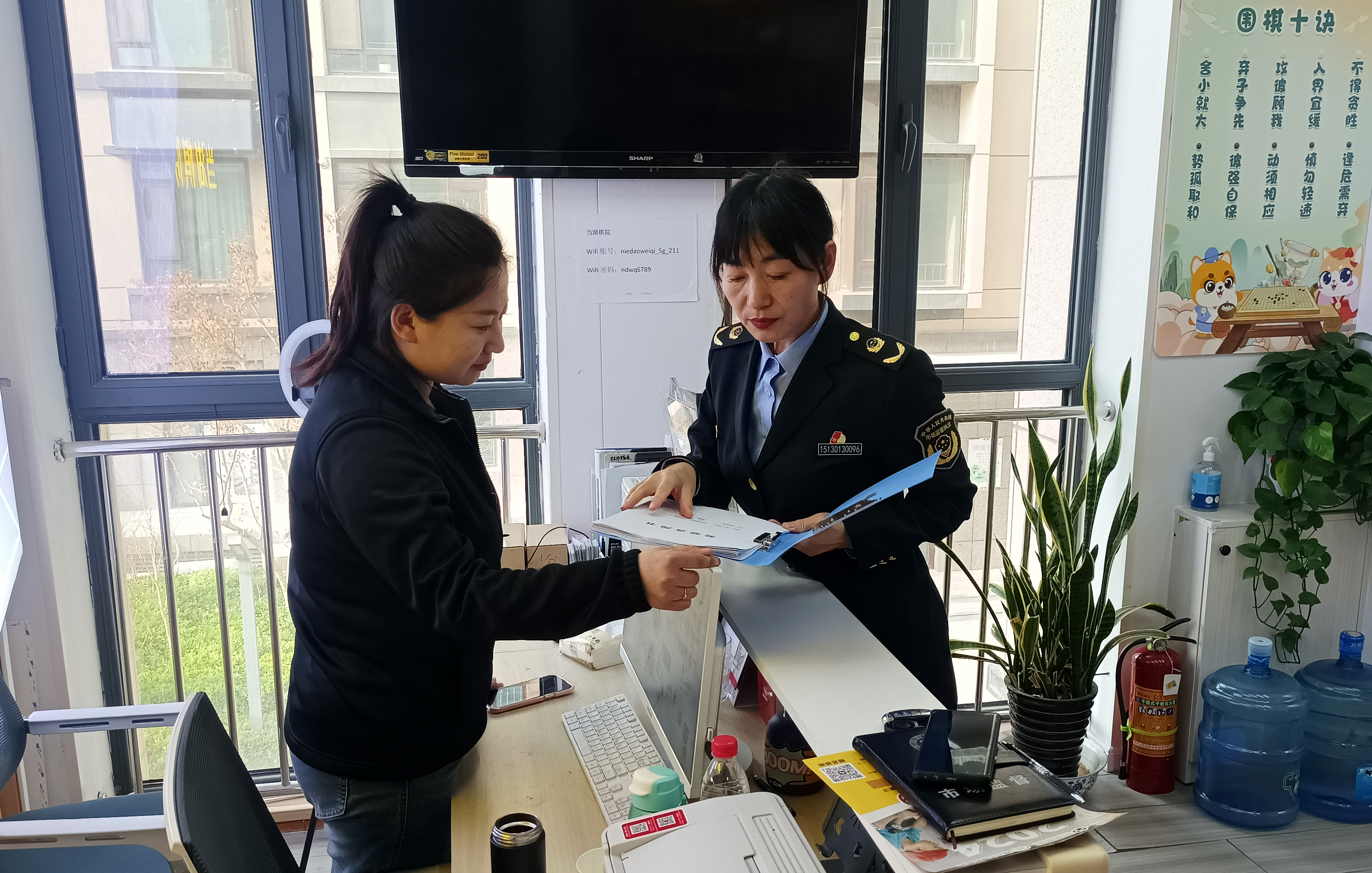 圖為執(zhí)法人員走進商戶檢查格式合同內(nèi)容及使用情況。
