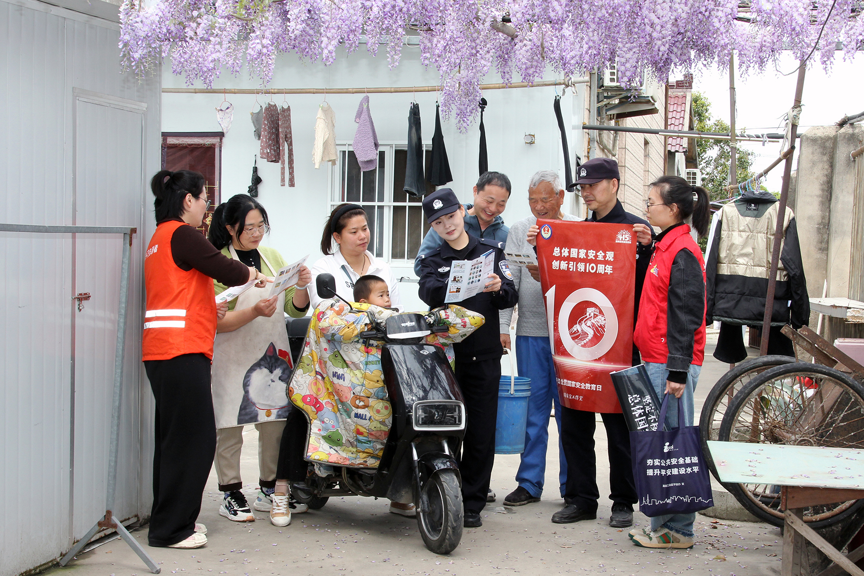 圖為4月11日,民警輔警會(huì)同工業(yè)區(qū)平安辦工作人員、平安志愿者在轄區(qū)開展國家安全知識(shí)宣傳。
