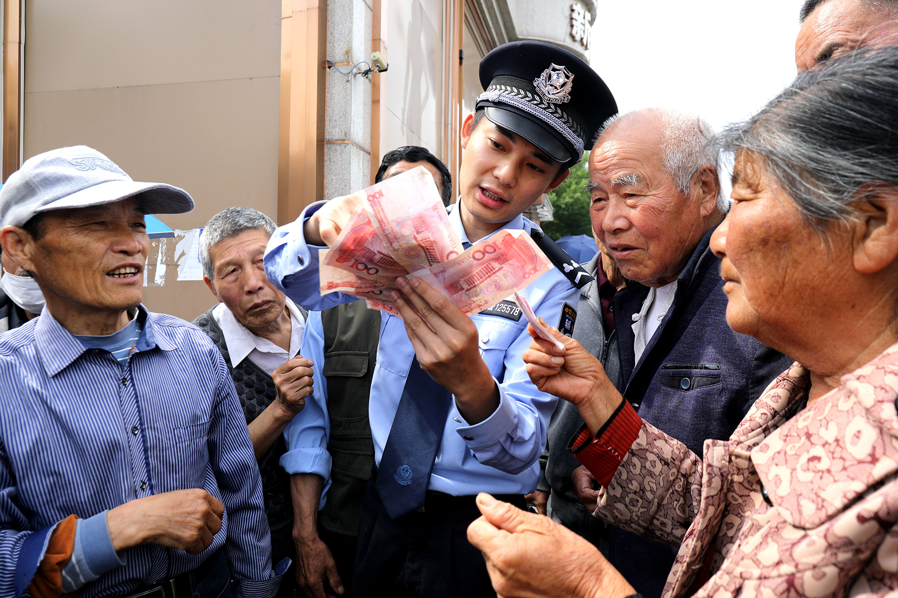 5月9日,安徽省舒城縣公安局經(jīng)偵大隊(duì)聯(lián)合城中派出所深入轄區(qū)飛霞公園,向老年人群體開展反假幣宣傳?!?·15”經(jīng)偵日即將來臨,民輔警通過發(fā)放宣傳資料、面對面講解等方式,現(xiàn)場教授老年群眾“一看、二摸、三聽”的假幣識(shí)別技巧,以提高群眾假幣識(shí)別能力和防范意識(shí),全面防范和打擊假幣違法犯罪行為。