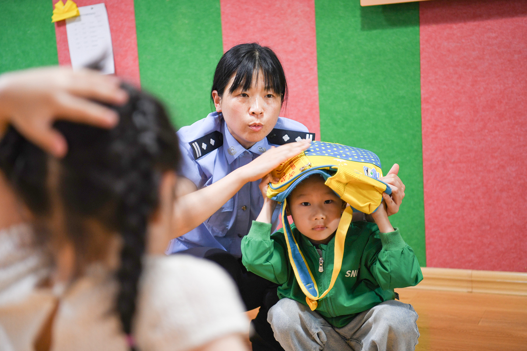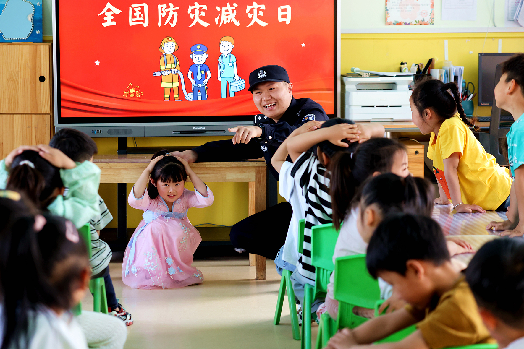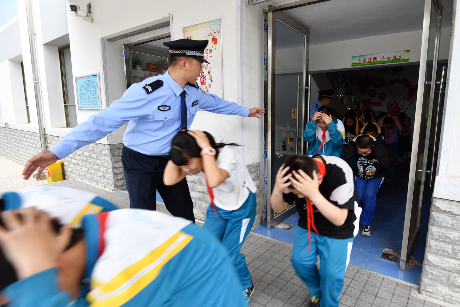 5月9日,安徽省合肥市公安局瑤海分局龍崗派出所民警走進轄區(qū)學(xué)校開展防震減災(zāi)應(yīng)急疏散演練活動。