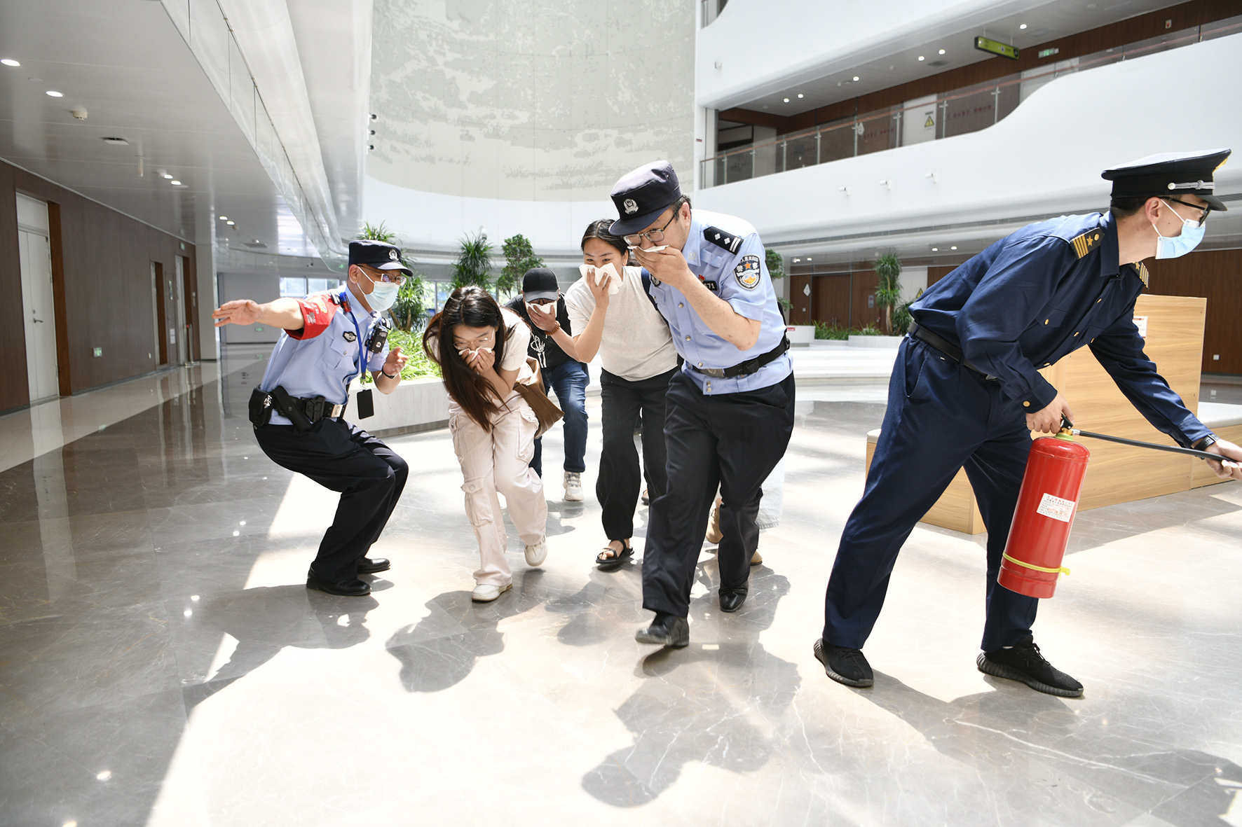 5月9日,河南省鄭州市公安局金水分局巡特警隊員在轄區(qū)大型圖書館開展自然災(zāi)害應(yīng)急處置救援演練。