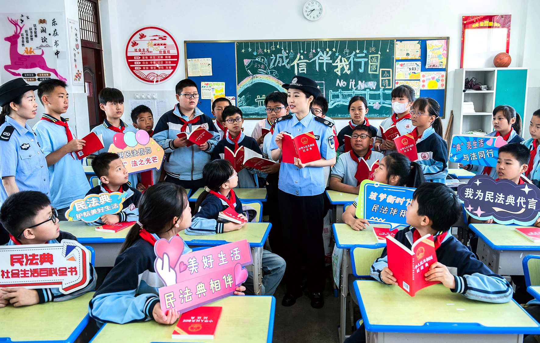 5月14日,安徽省含山縣司法局普法工作者走進安徽師范大學附屬含山實驗小學開展“民法典進校園 法律保駕護航”主題教育活動。