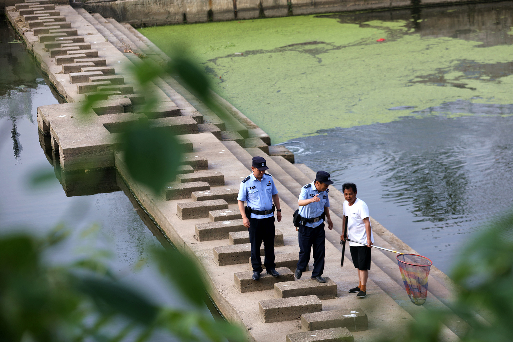 圖三、輔警在河邊巡邏時發(fā)現(xiàn)情況并勸誡。