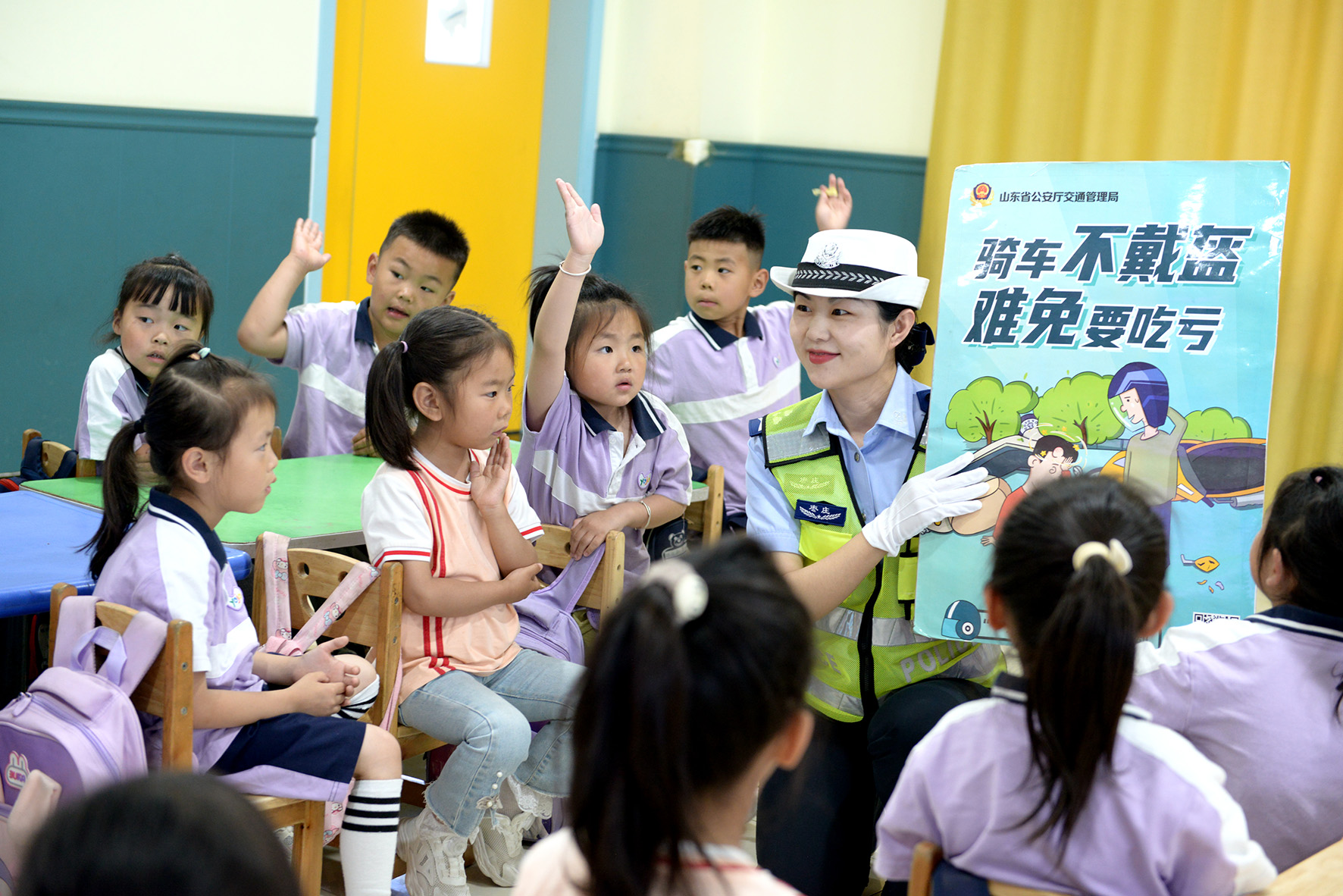 5月27日,山東省棗莊市公安局山亭分局交警大隊走進(jìn)轄區(qū)海子社區(qū)陽光幼兒園,以寓教于樂的方式,為小朋友們上了一堂生動有趣的交通安全教育課。