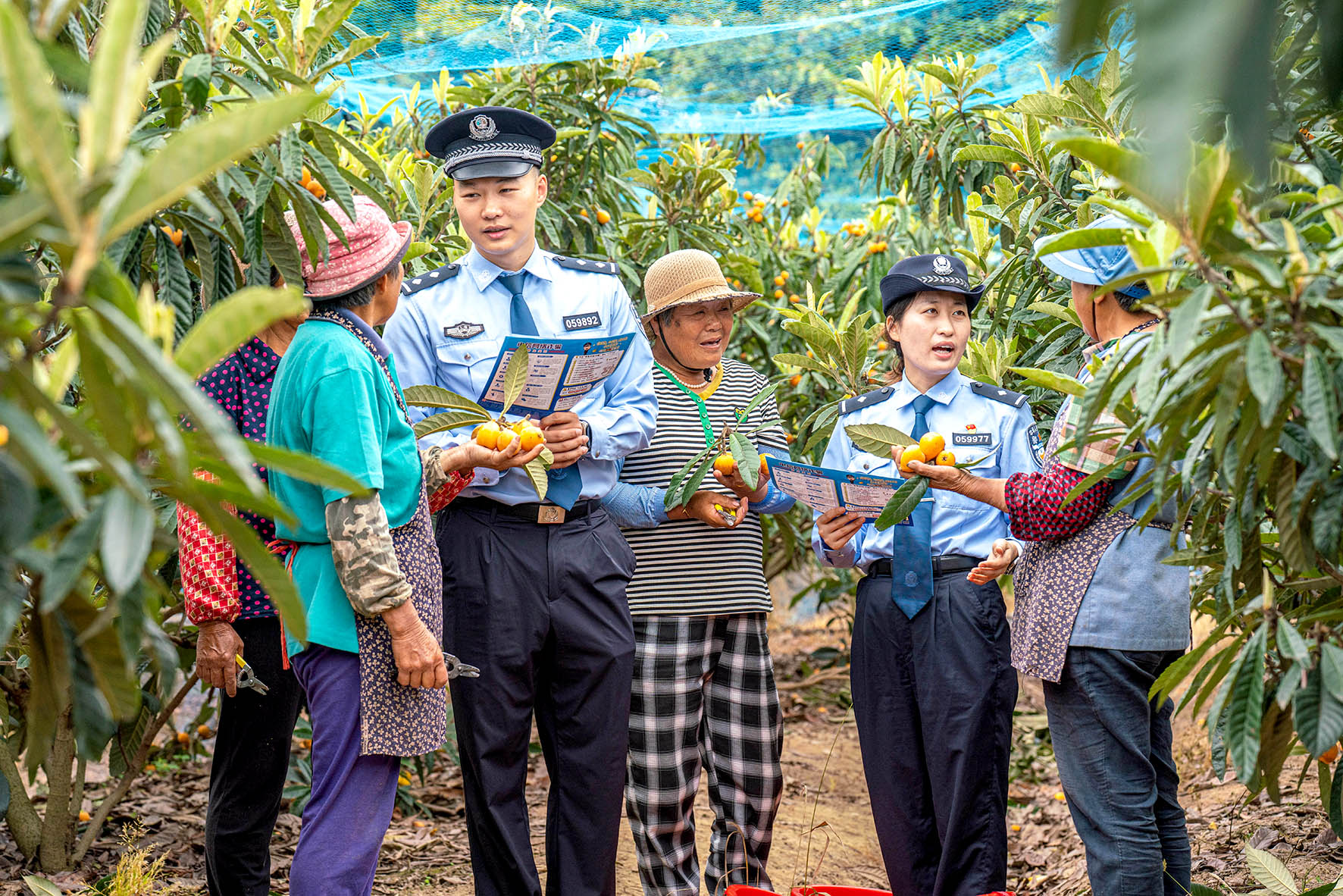 圖為民警向果農們開展電信詐騙防范宣傳。