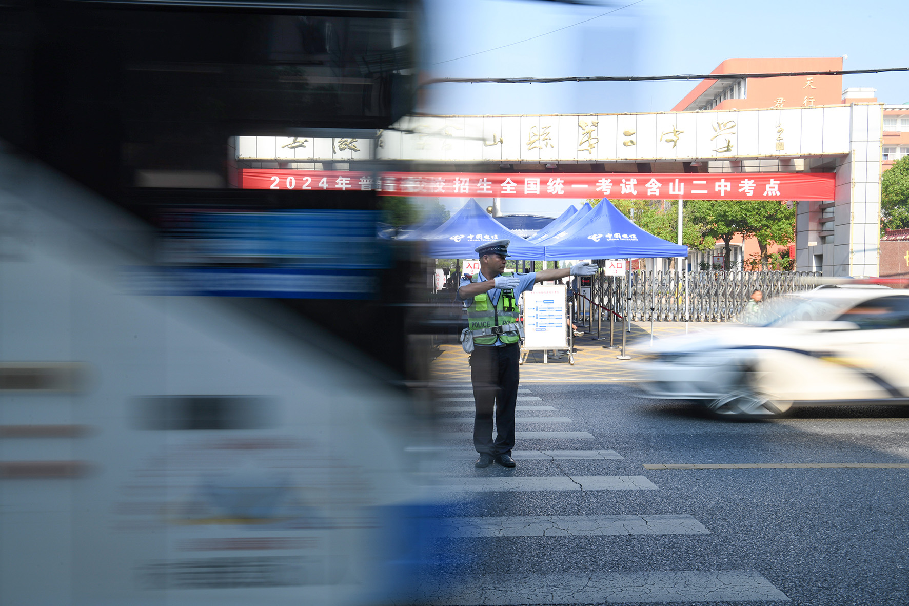 6月7日,甘肅省臨澤縣公安局交警大隊抽調(diào)精干警力對考點周邊開展現(xiàn)場秩序維護、道路交通指揮疏導工作,全力護航高考順利進行。