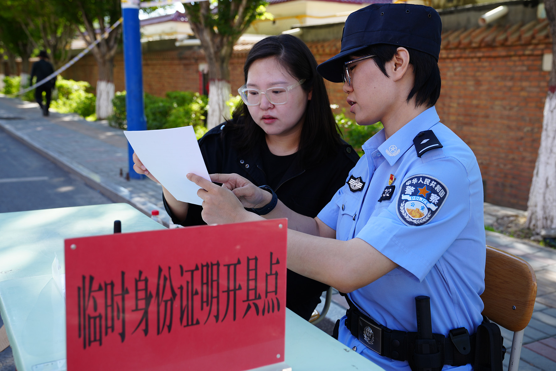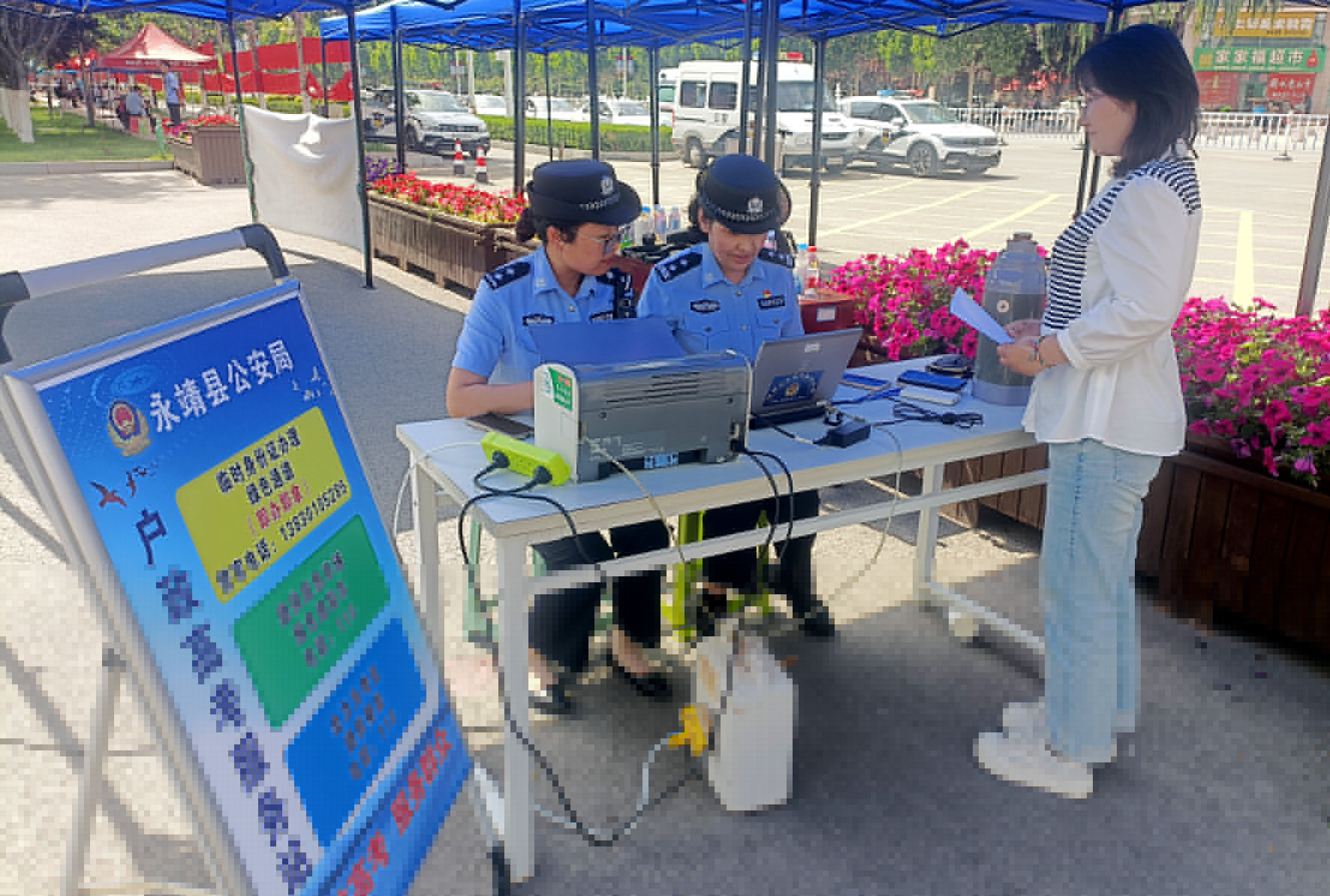 6月7日,甘肅省永靖縣公安局在文理科兩個考點設置“戶政高考服務站”,為考生提供便利服務。