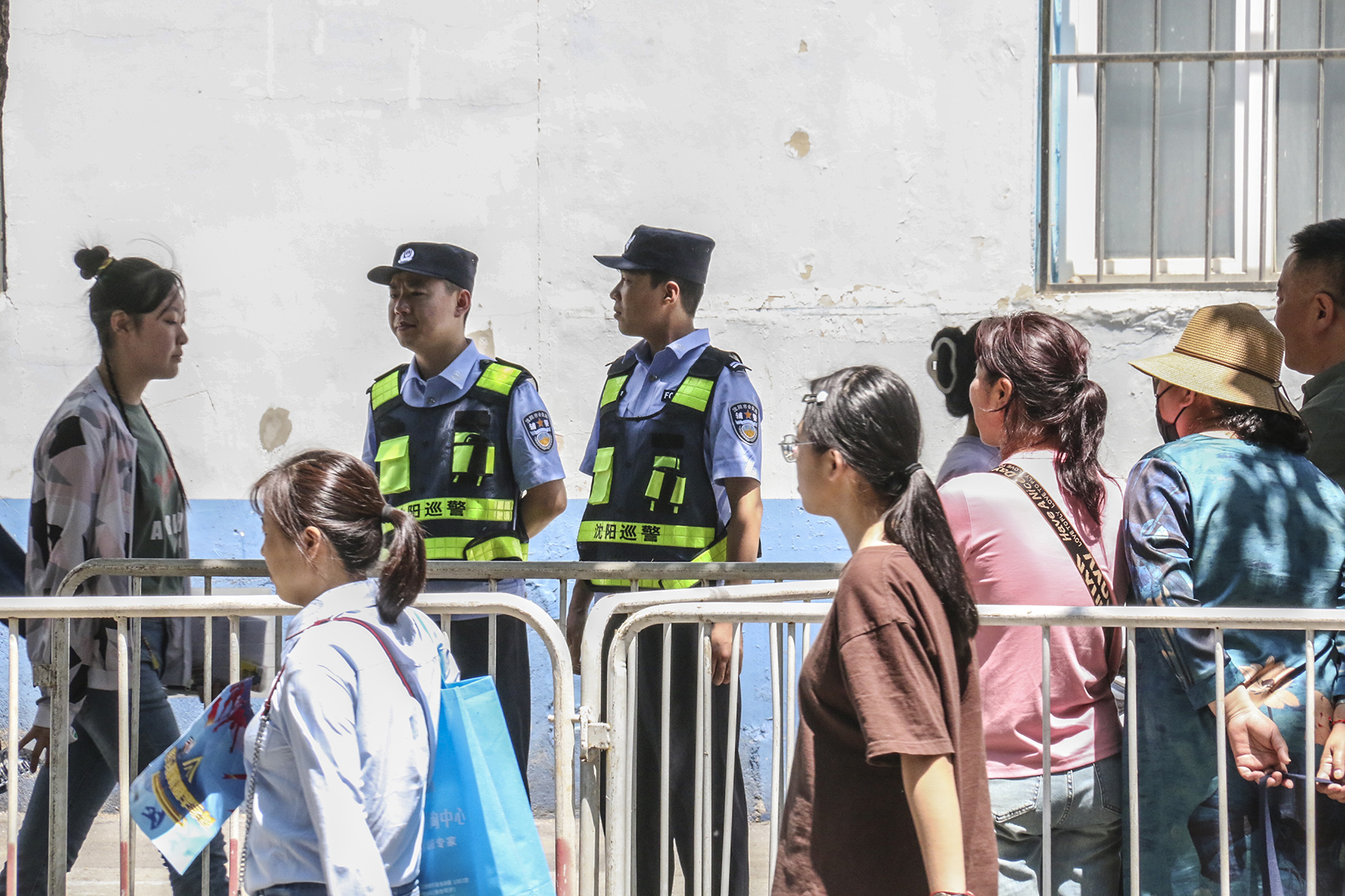 6月9日,遼寧省沈陽市公安局民警輔警在沈陽市回民中學考點外執(zhí)勤。