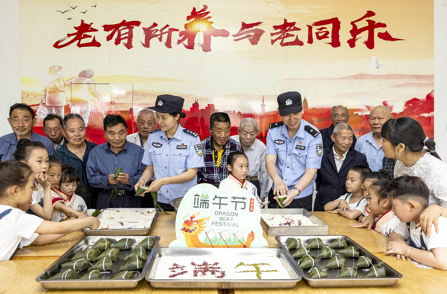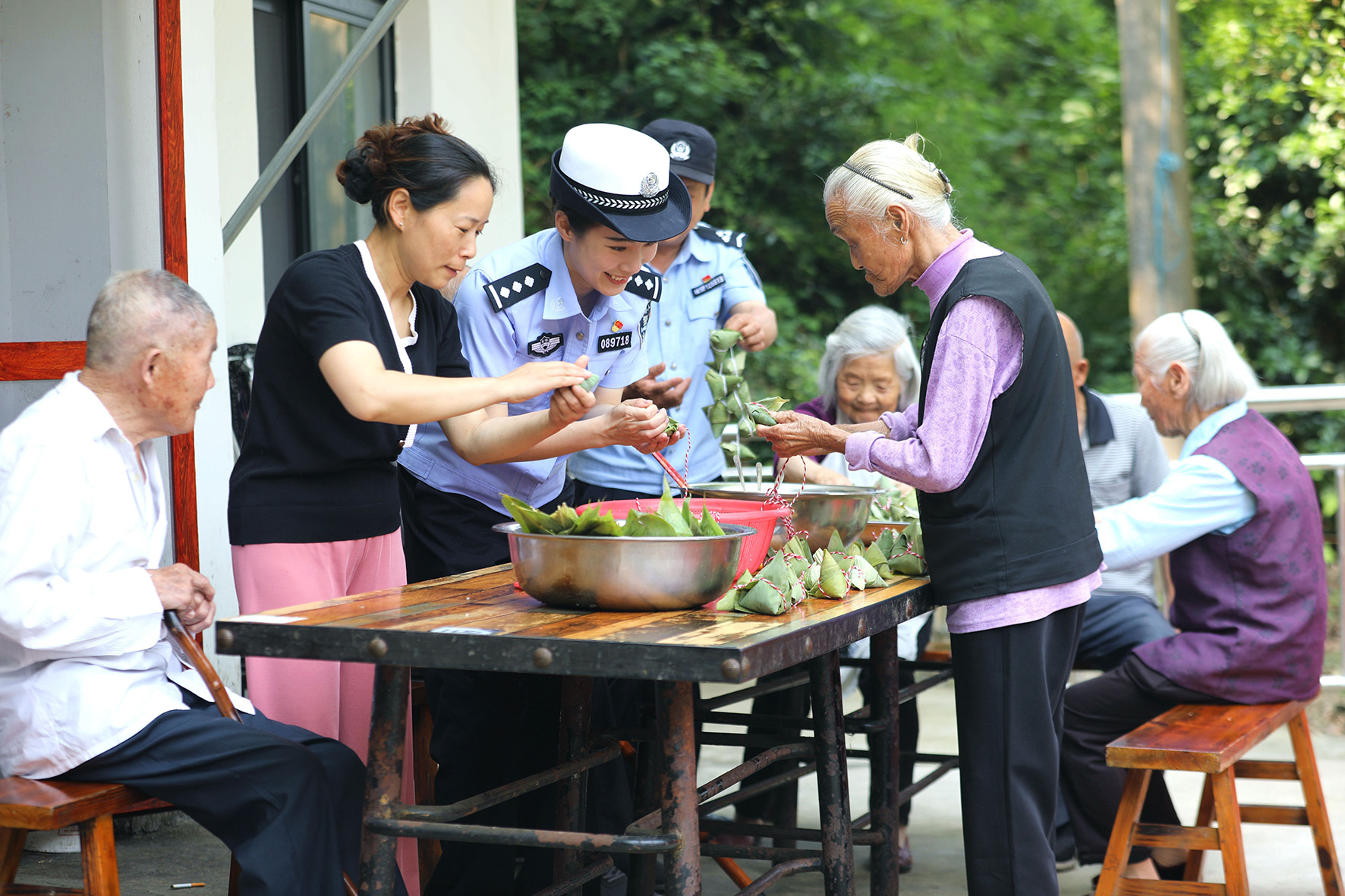 6月9日,安徽省舒城縣公安局交管大隊(duì)聯(lián)合五顯派出所走進(jìn)轄區(qū)敬老院,與老人們一起包粽子,宣講出行、用電等方面安全知識。