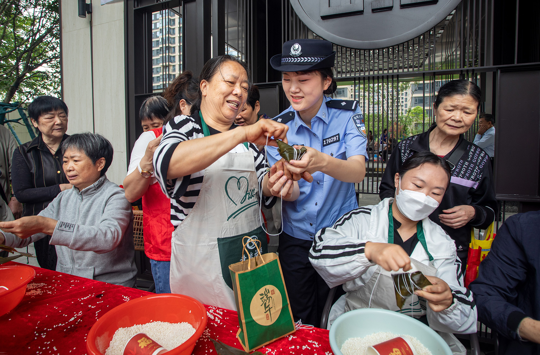 6月7日,浙江省臺州市公安局黃巖分局民警走進(jìn)西江社區(qū)與群眾一起包粽子、拉家常,同時(shí)開展反詐防范宣傳。