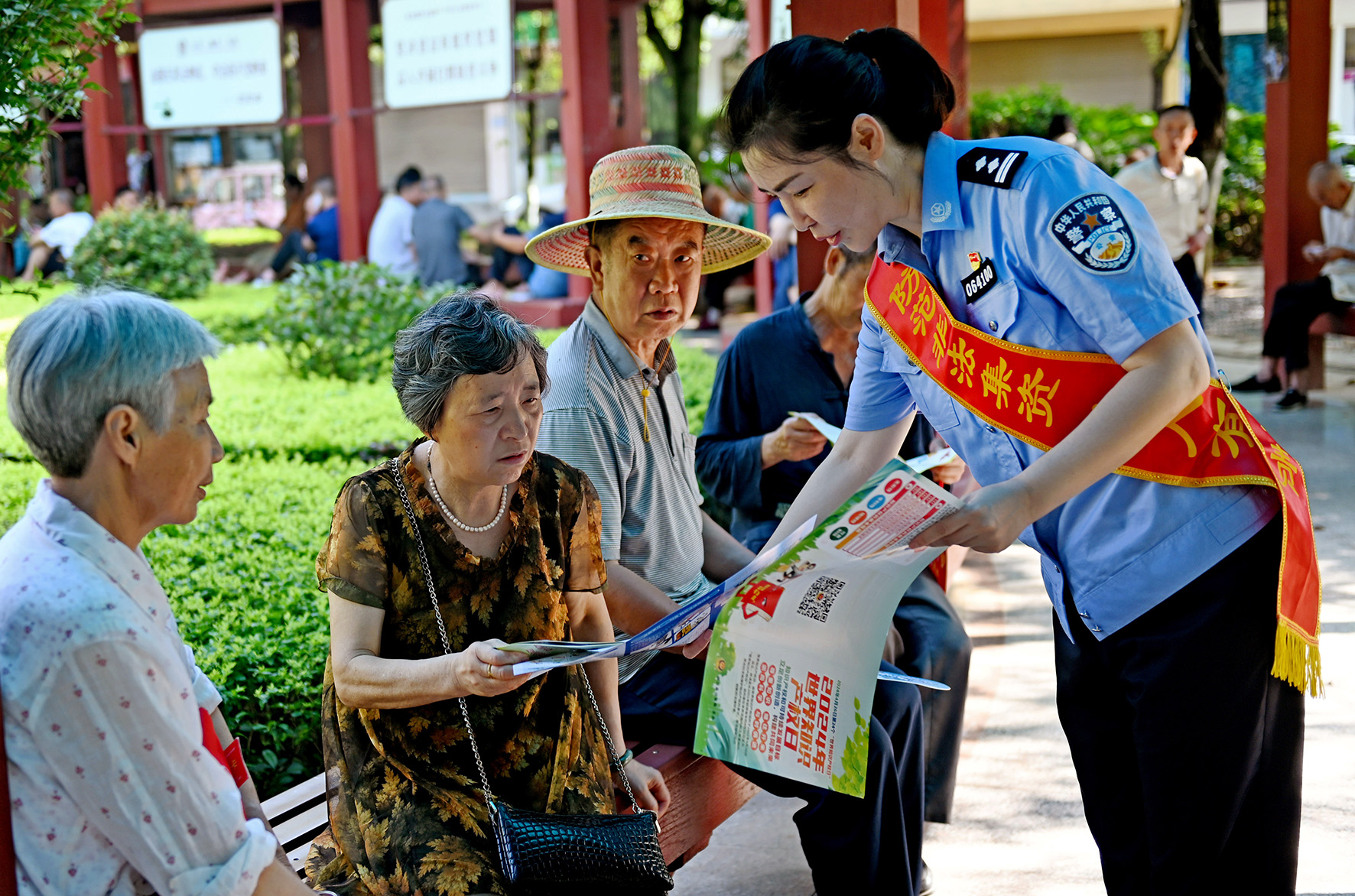 6月15日,湖南省邵陽市洞口縣公安局民警在向群眾宣傳防范非法集資知識。