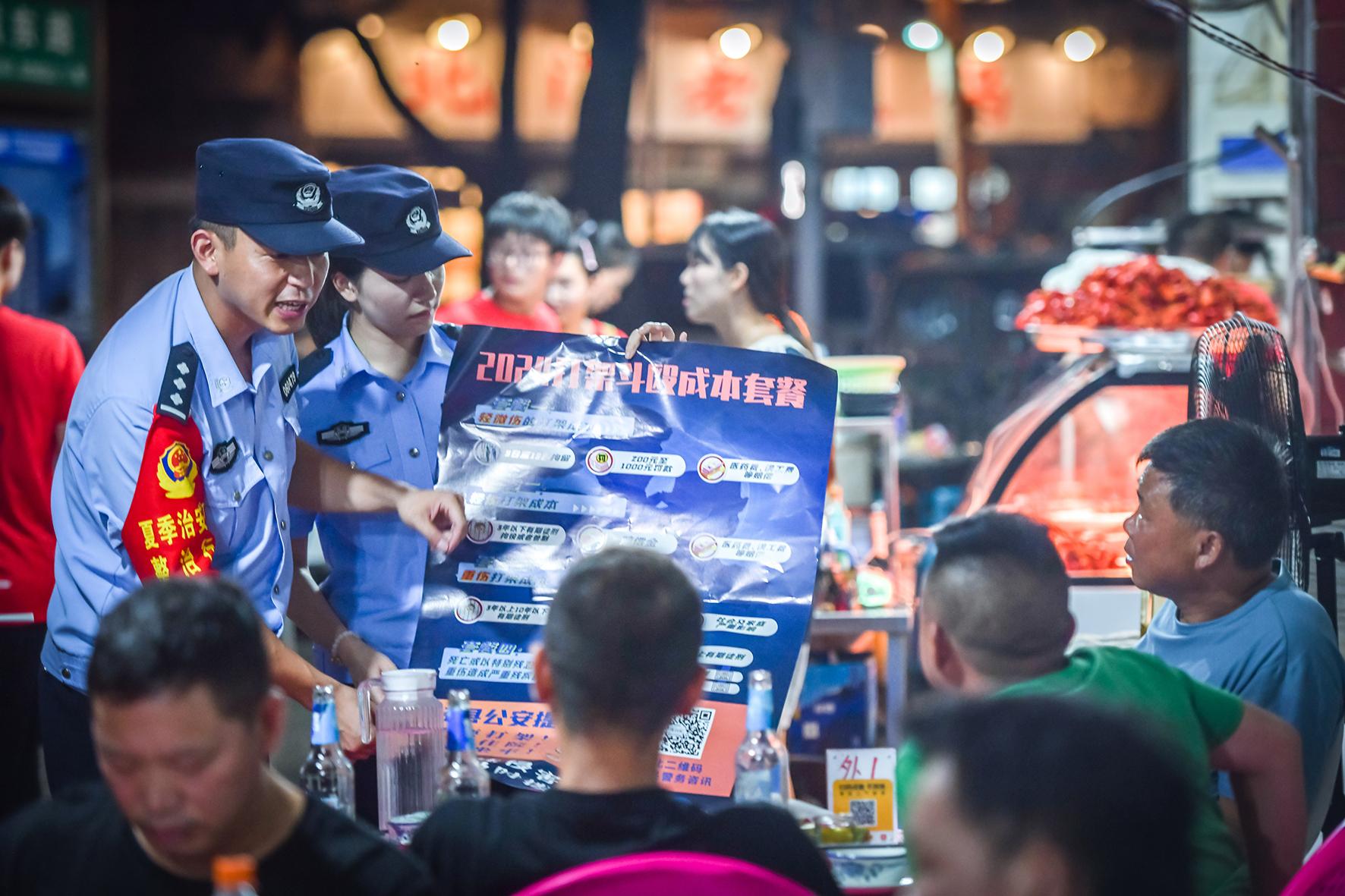 7月17日晚,安徽省涇縣公安局結(jié)合夏季社會(huì)治安規(guī)律特點(diǎn),緊盯易發(fā)治安事件場所開展“面對(duì)面”宣防工作。