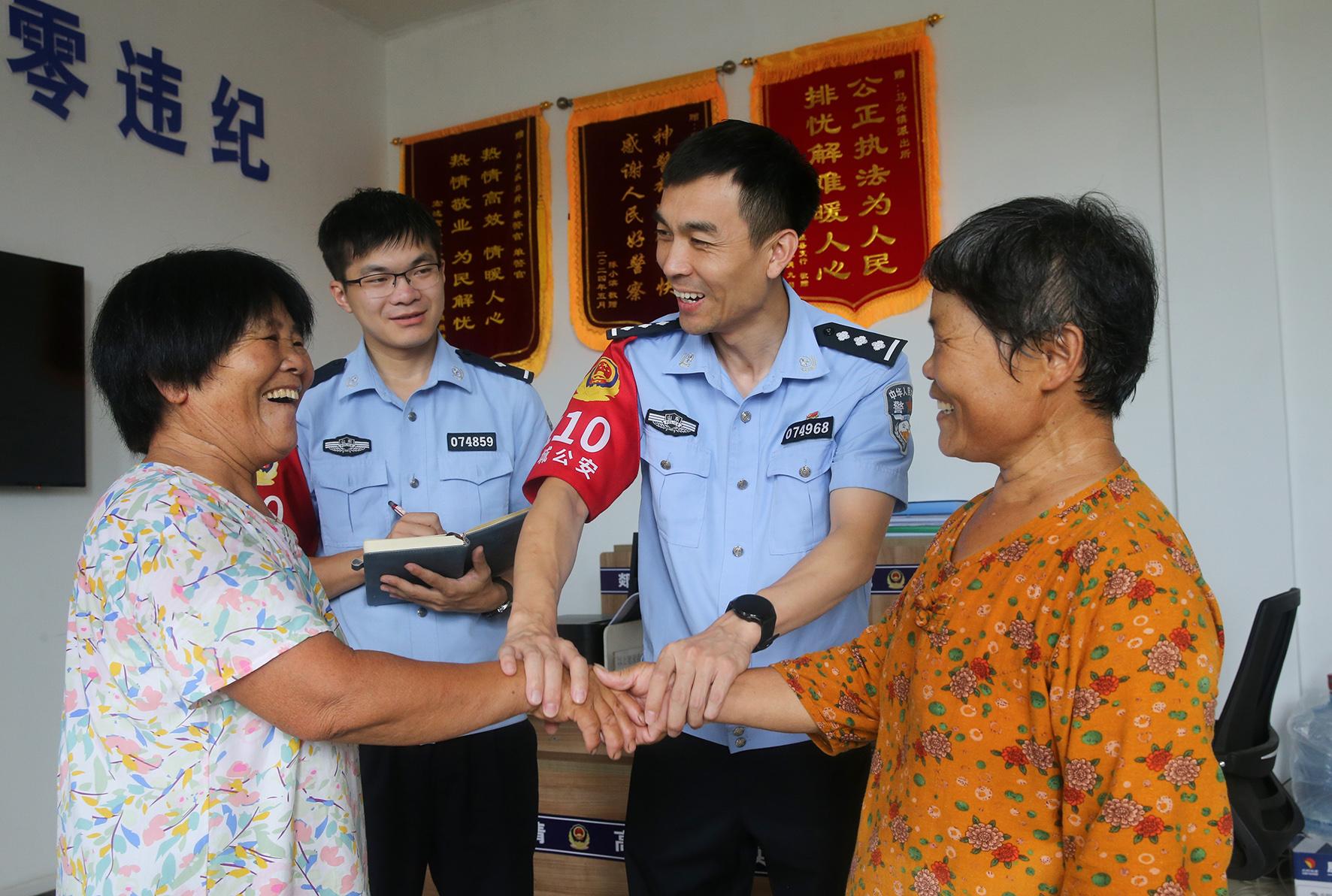 圖為8月4日,郯城縣公安局馬頭派出所民警成功調(diào)解一起村民鄰里糾紛。
