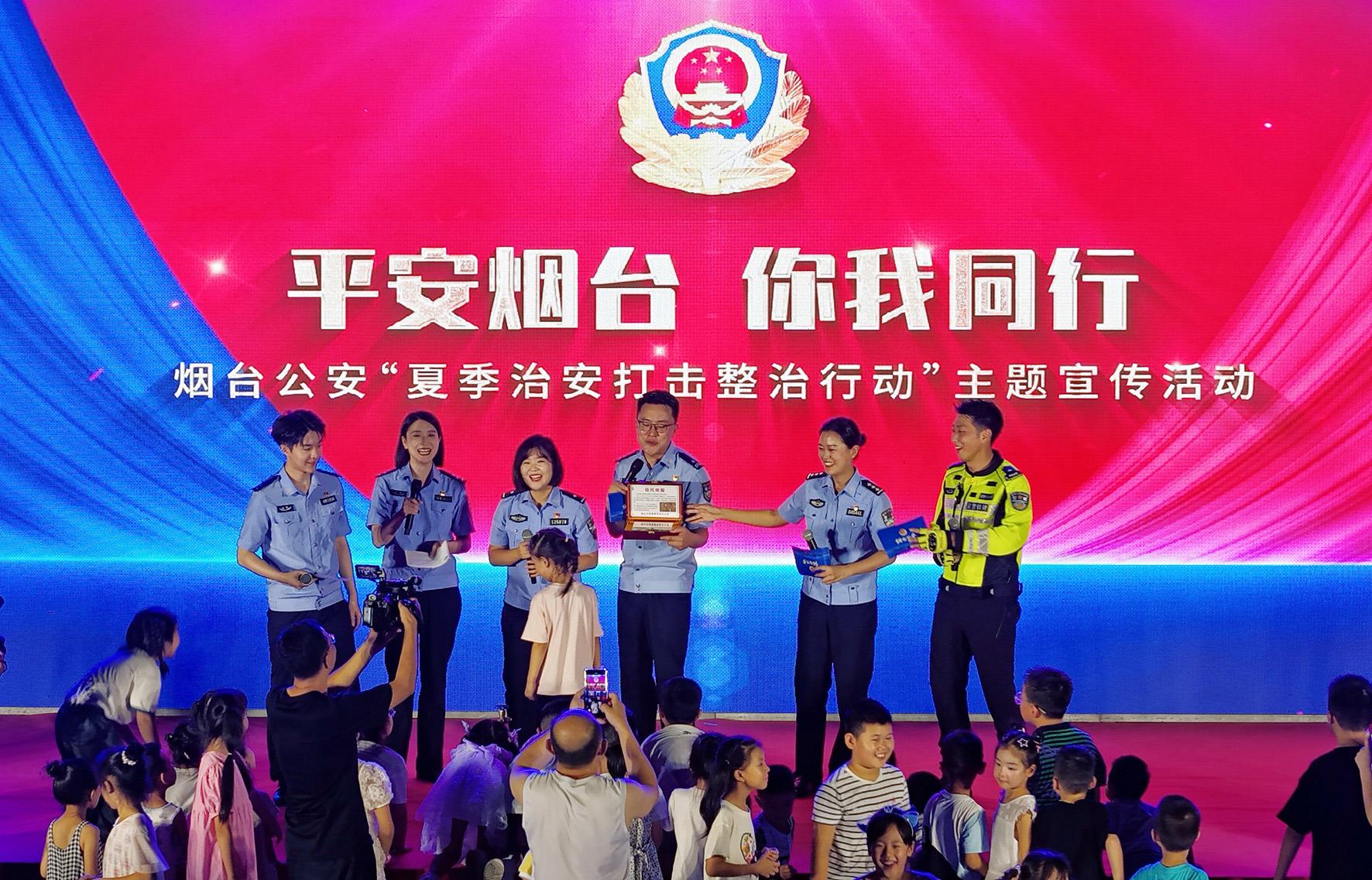 8月2日晚,山東省煙臺市公安局在市民廣場舉辦“平安煙臺 你我同行”煙臺公安“夏季治安打擊整治行動” 主題宣傳活動,民警通過現場宣講、防范劇場、游戲互動等多種形式,向群眾宣傳道路交通、防非法集資、禁毒、反電詐等知識,進一步提升群眾的安全防范意識。