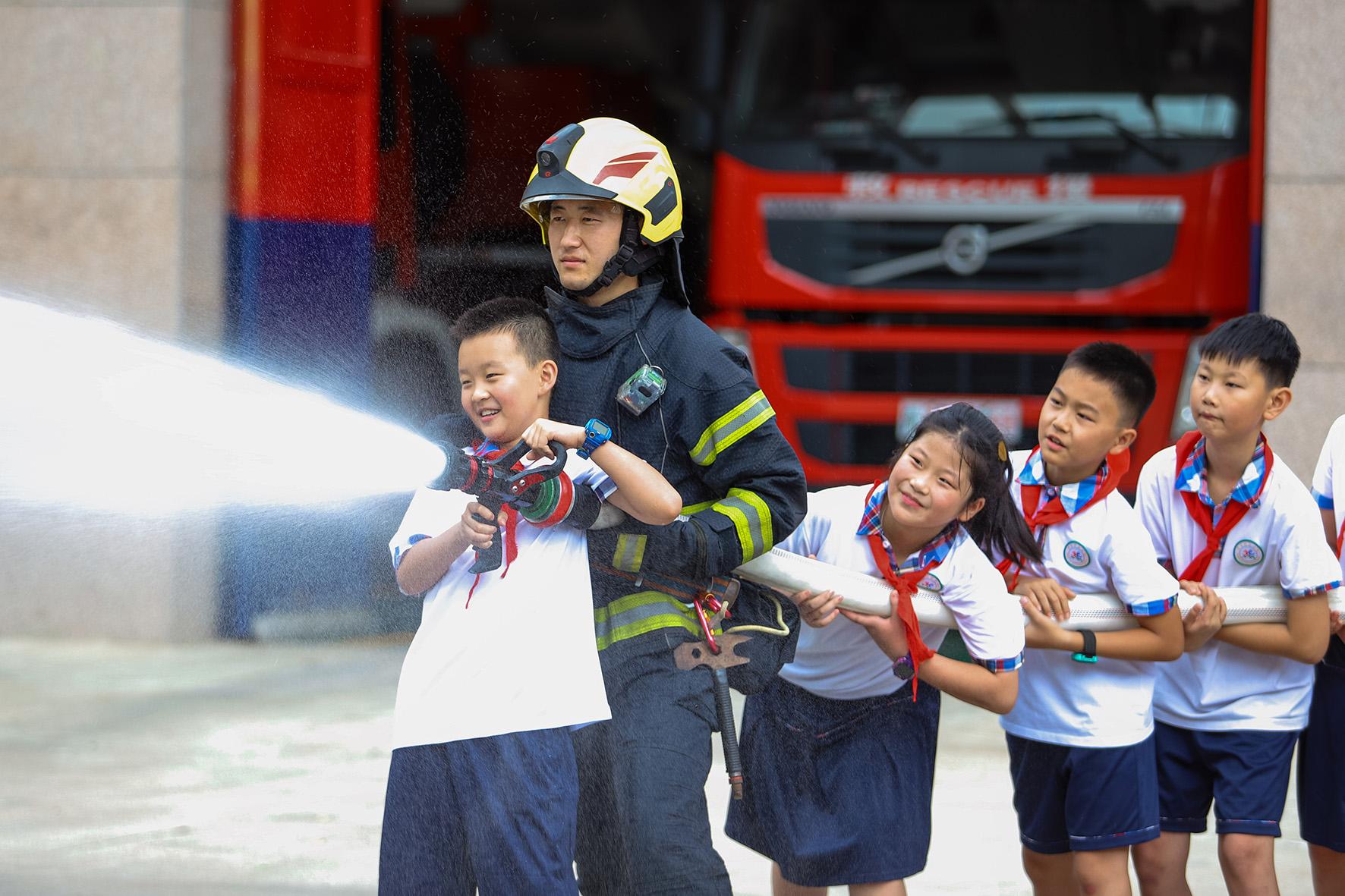 8月5日,山東省青島市李滄區(qū)李村街道新時(shí)代文明實(shí)踐所組織轄區(qū)青少年,走進(jìn)青島市李滄區(qū)消防救援大隊(duì)李村站開展“消防‘零’距離 安全伴‘童’行” 暑期消防安全體驗(yàn)活動(dòng)。
