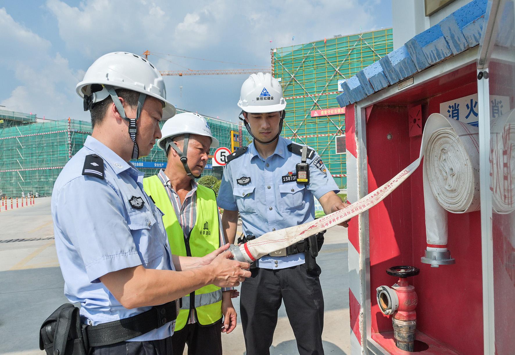 圖為 8月6日,壺山派出所 “項目警長”在重點項目施工現(xiàn)場開展安全檢查,并為高溫下作業(yè)的建設(shè)者送上防暑藥品。