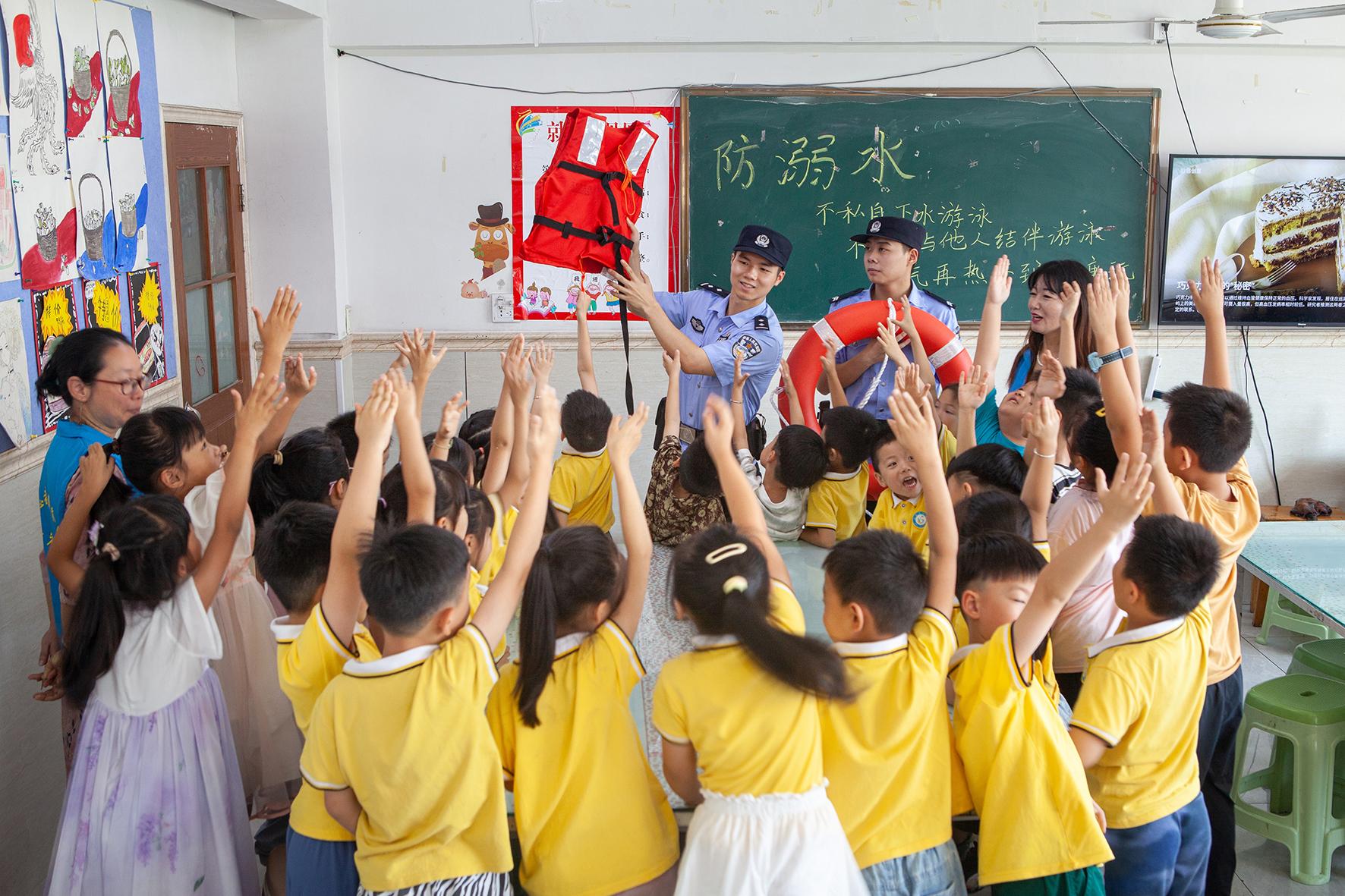 8月12日,浙江省臺州市公安局黃巖分局江口派出所民警來到轄區(qū)內(nèi)的涵藝文創(chuàng)園,給參加暑期培訓的小朋友們開展防溺水宣傳,提升他們的防范意識。