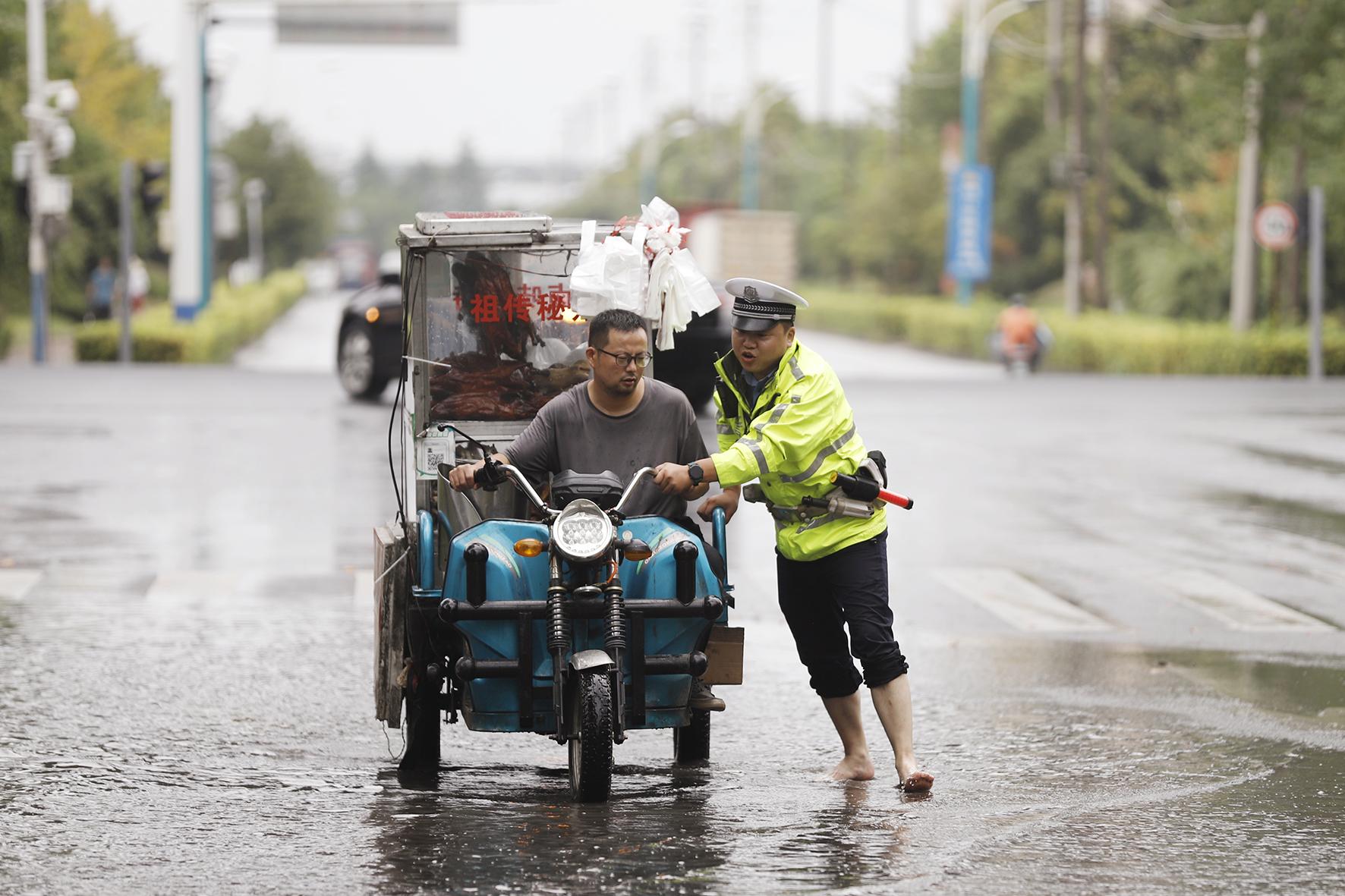 8月19日,安徽省蕪湖市迎來強(qiáng)降雨天氣。蕪湖市公安局交警支隊(duì)鳩江大隊(duì)聞?dòng)嵍鴦?dòng),全警上崗,疏導(dǎo)交通,服務(wù)市民,確保市民平安出行。