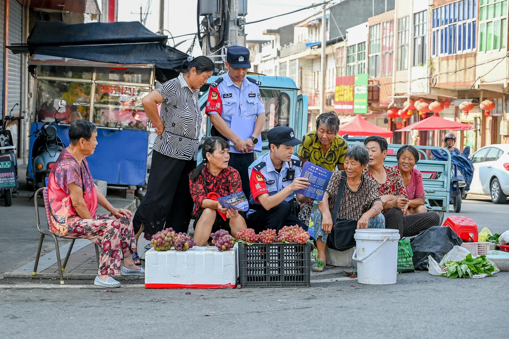 8月22日,安徽省和縣公安局民警在街頭向群眾開展預(yù)防網(wǎng)絡(luò)電信詐騙宣傳。