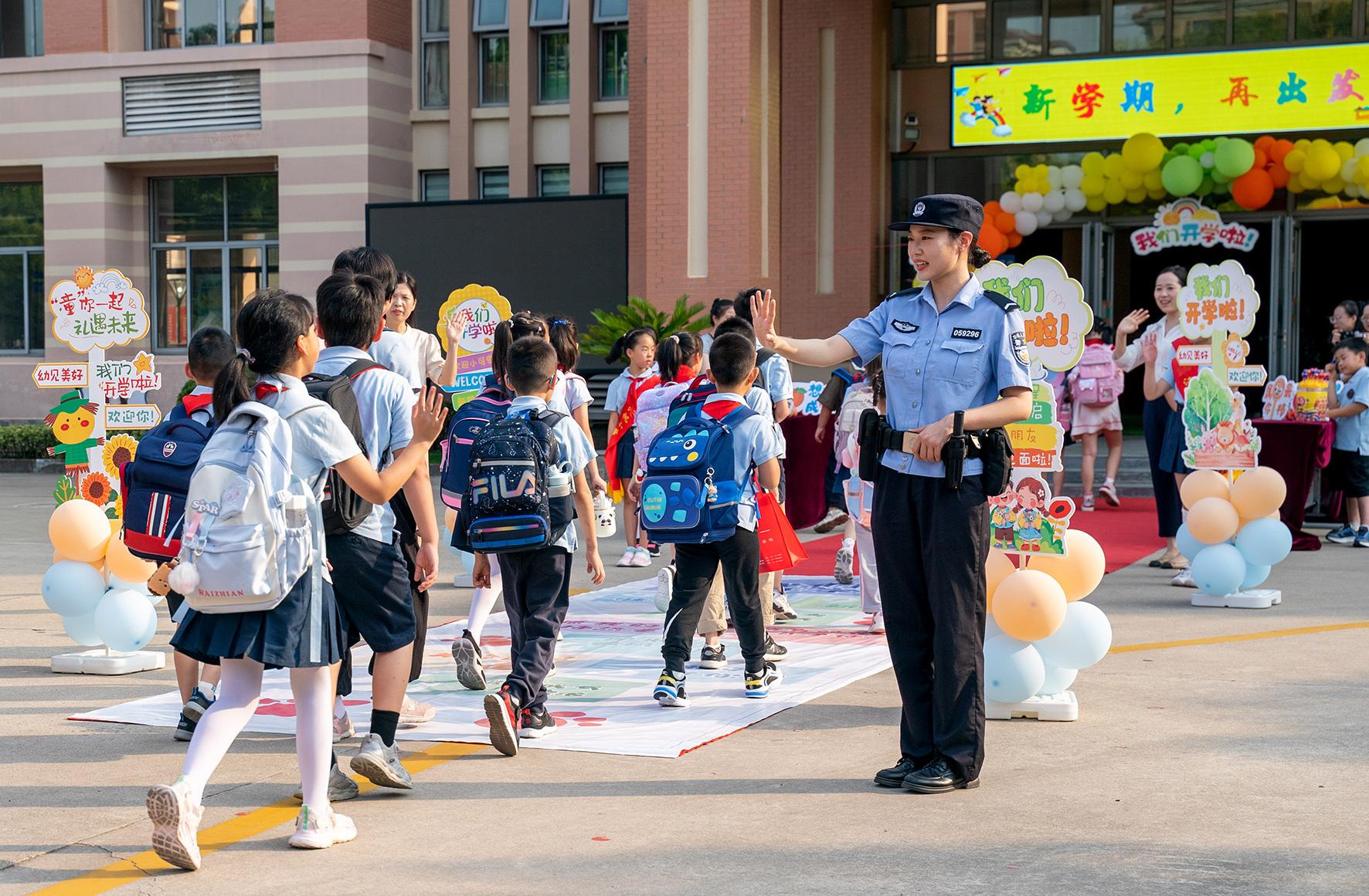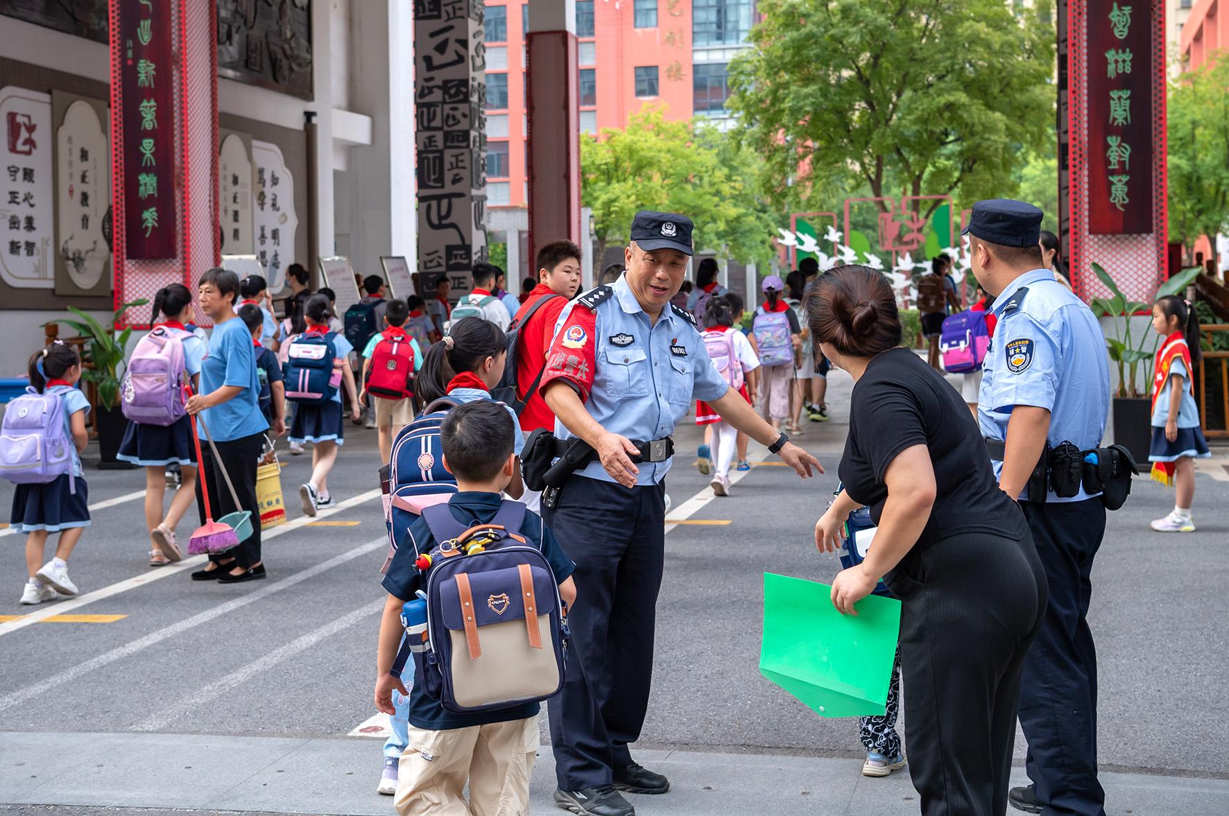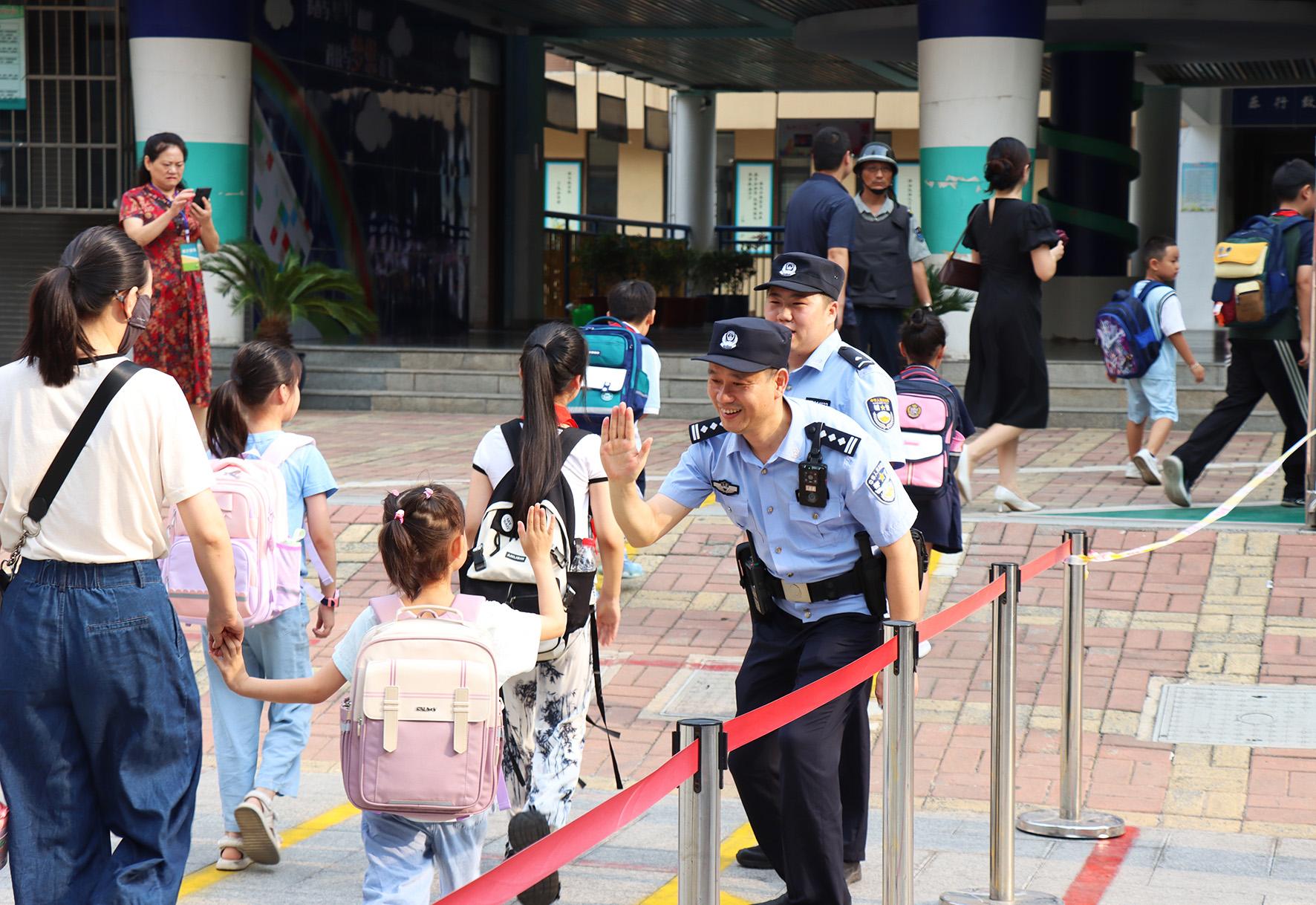9月2日,安徽省合肥市公安局蜀山分局五里墩派出所社區(qū)民警來(lái)到頤和佳苑小學(xué),為師生們站好平安“護(hù)學(xué)崗”。