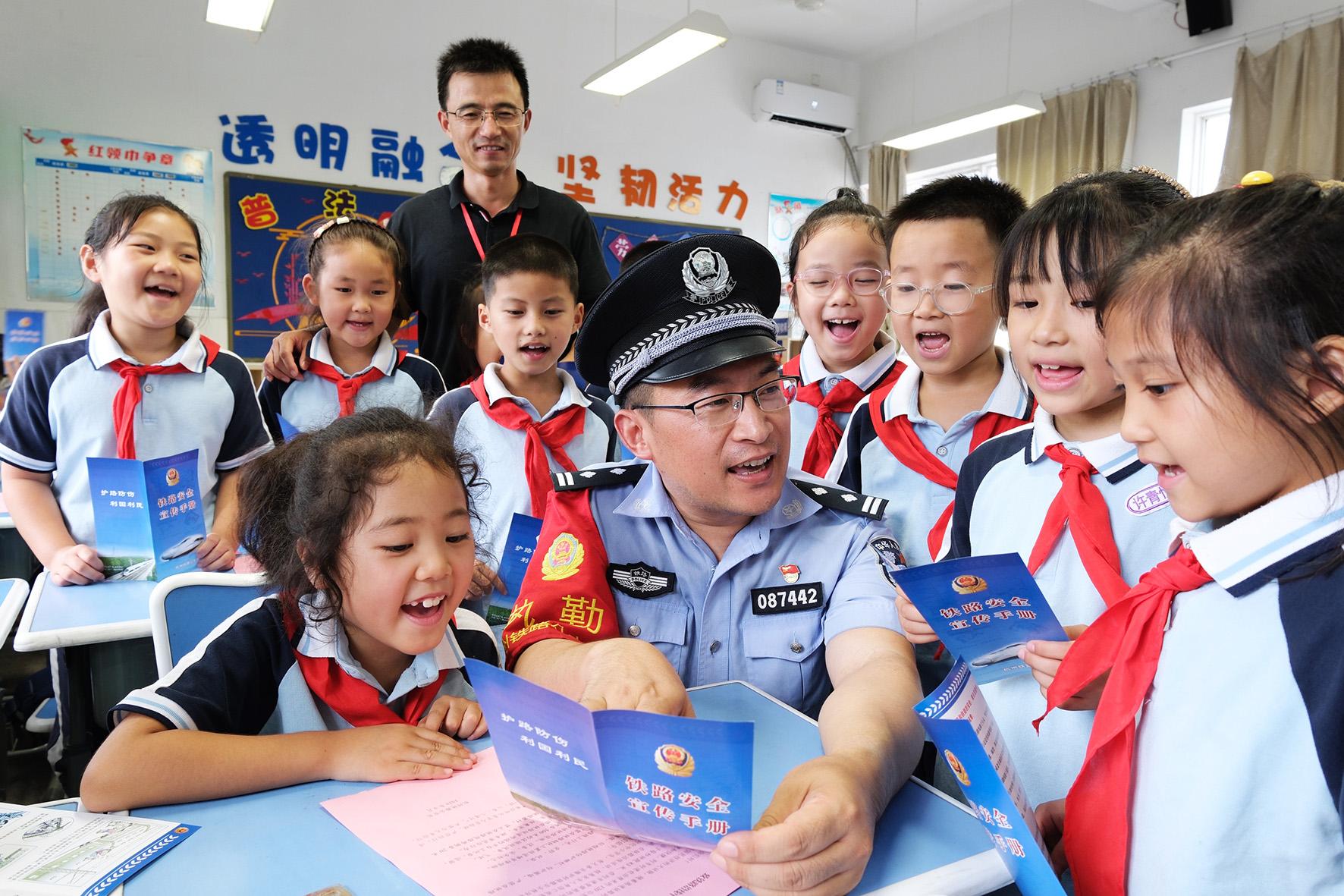 9月2日,杭州公安處長(zhǎng)興站派出所民警來(lái)到長(zhǎng)興太湖街道中心小學(xué)開展愛(ài)路護(hù)路普法宣傳活動(dòng)。