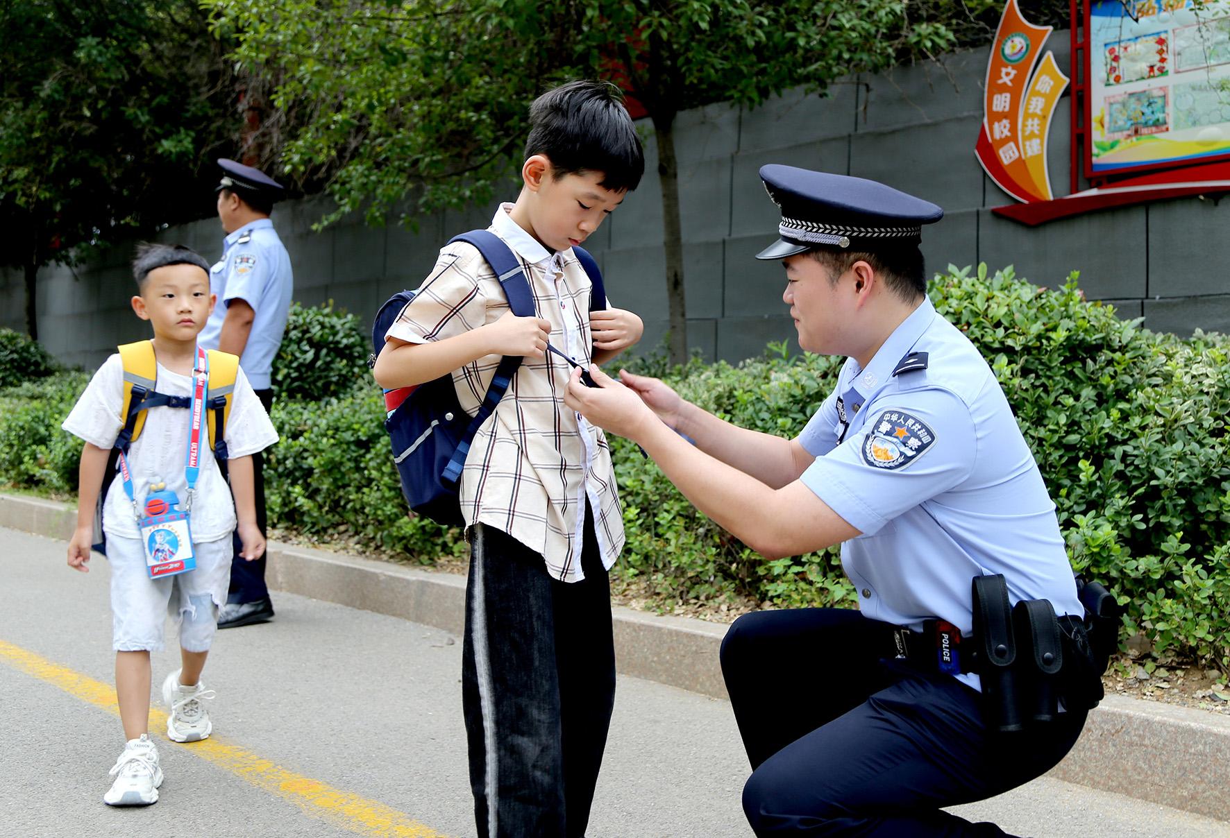 9月2日,山東省棗莊市公安局市中區(qū)分局開啟新學(xué)期護(hù)學(xué)模式,在各學(xué)校設(shè)立“護(hù)學(xué)崗”,全力護(hù)航新學(xué)期校園安全。
