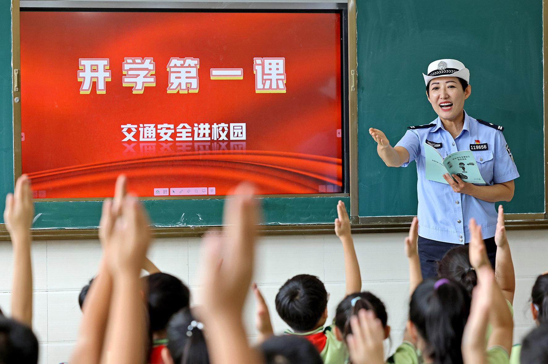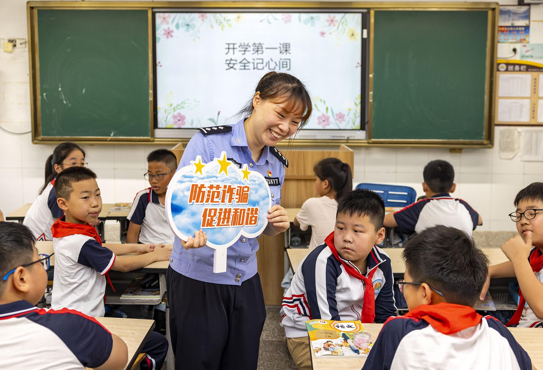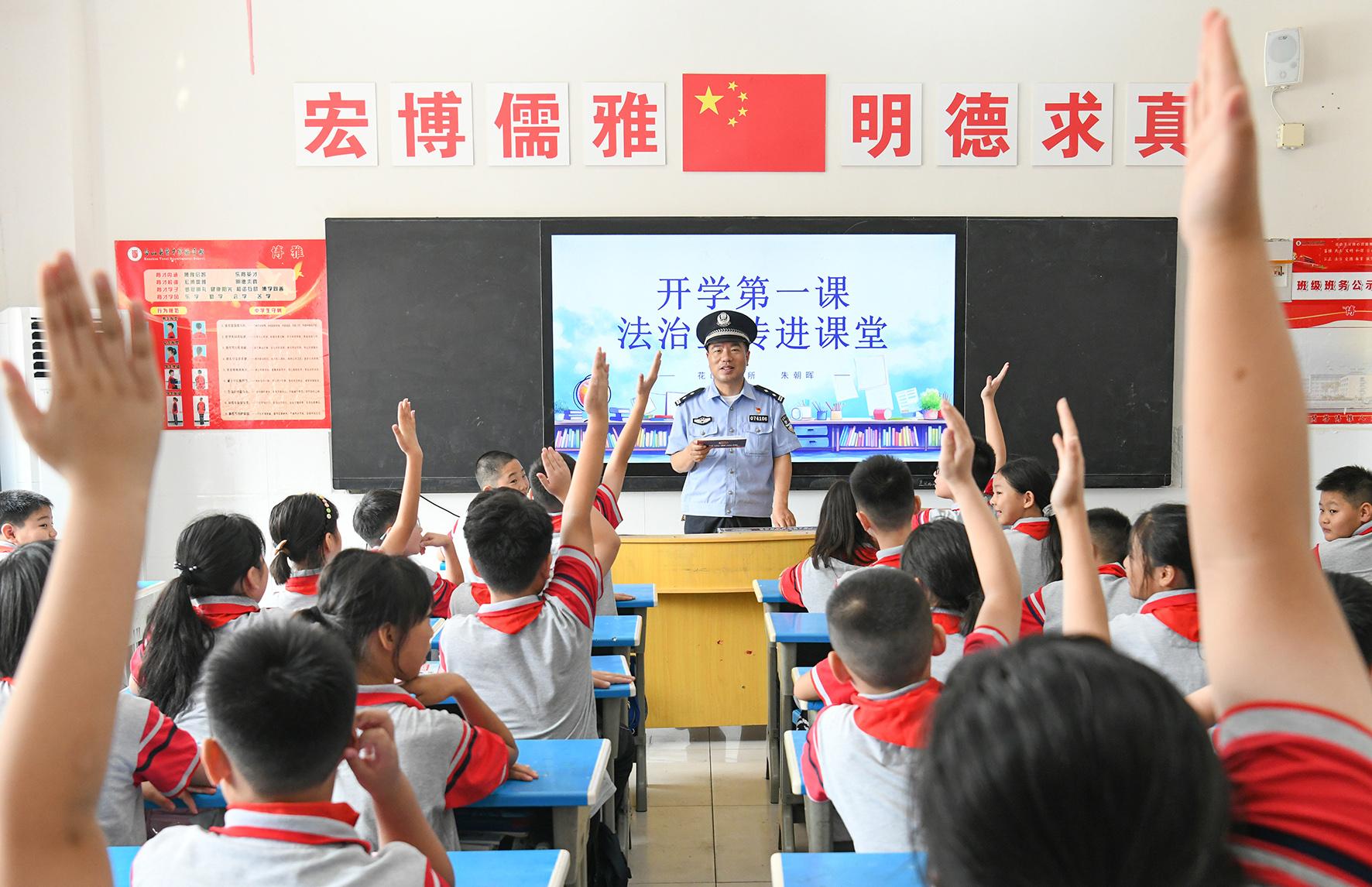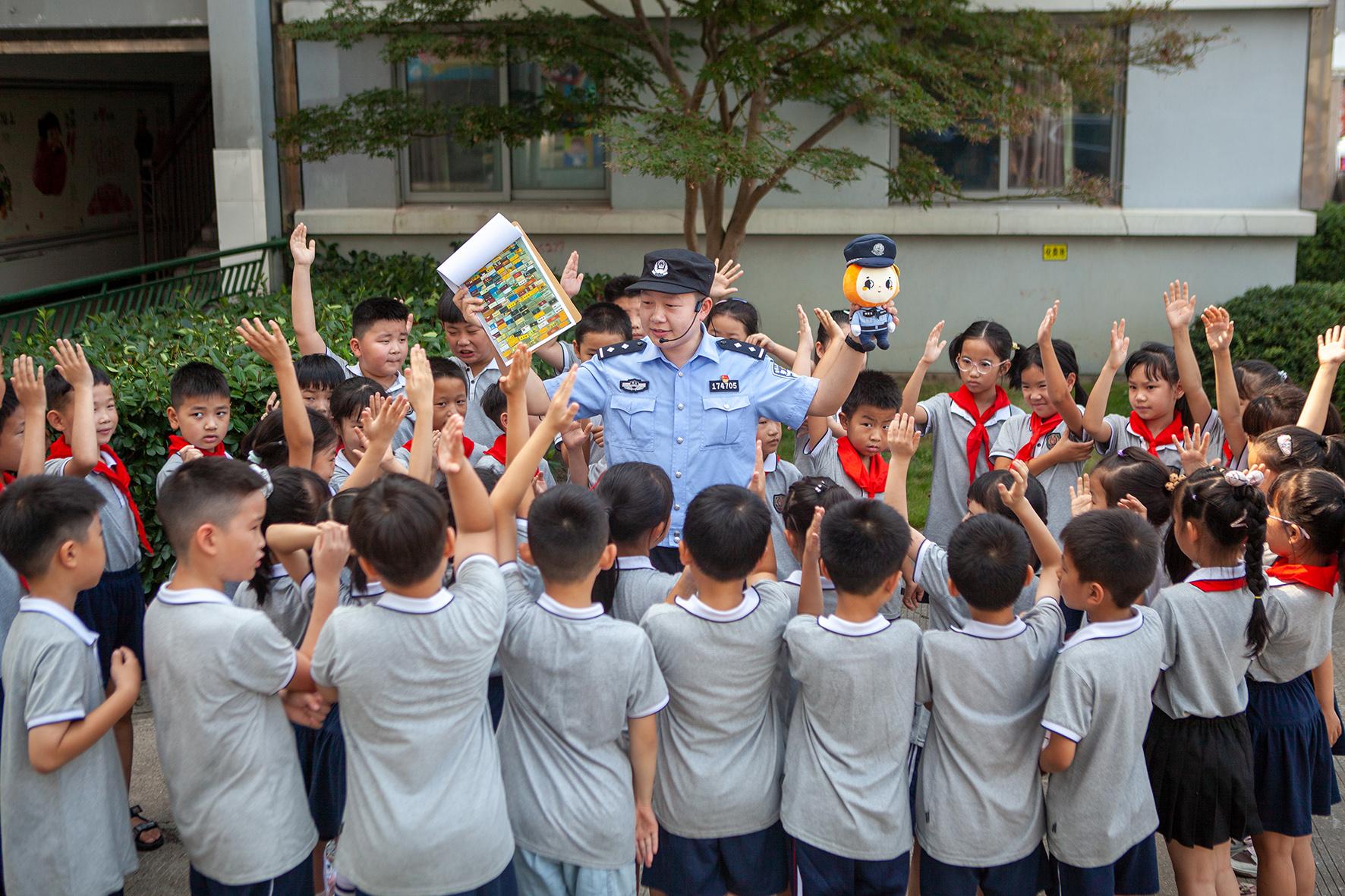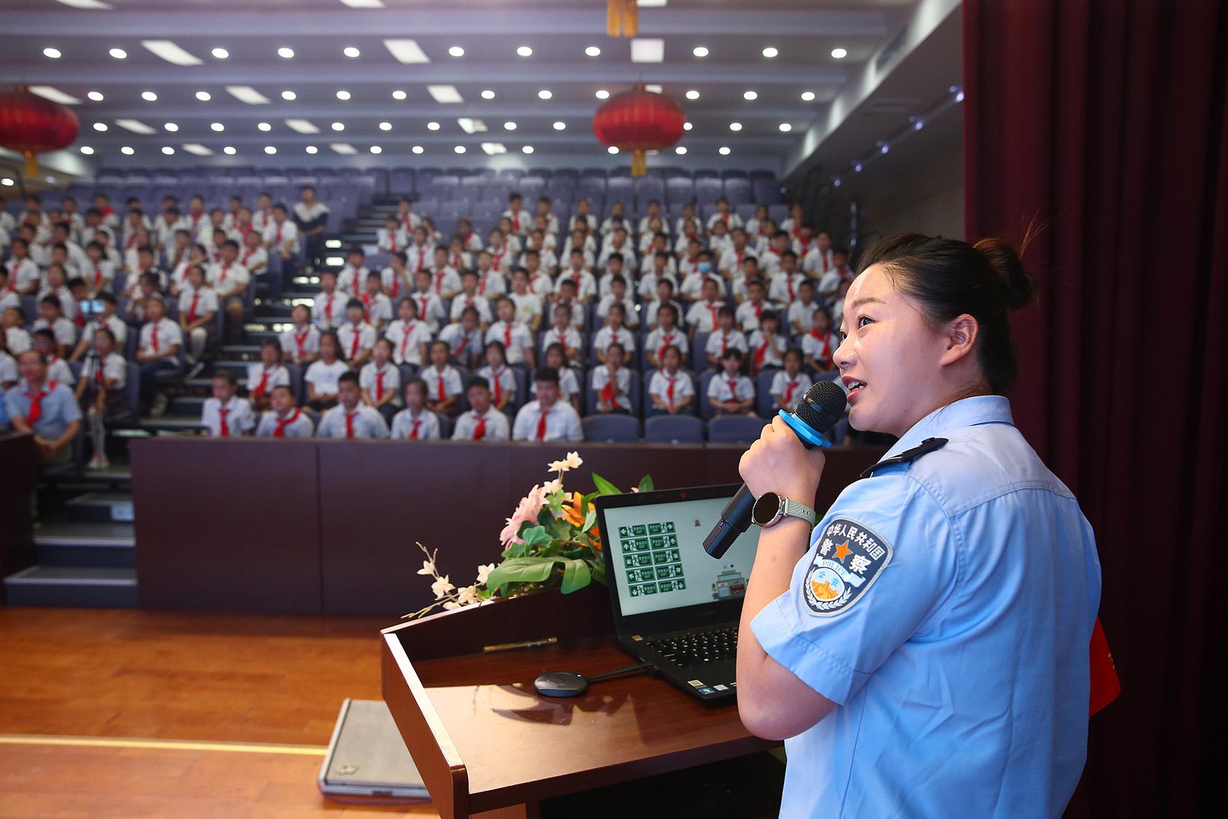 9月2日,山東省濟(jì)南市公安局市中區(qū)分局組織民警走進(jìn)轄區(qū)學(xué)校給學(xué)生普及安全知識(shí),上好開學(xué)“第一課”。