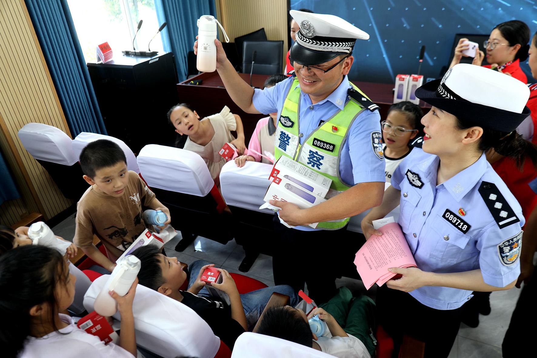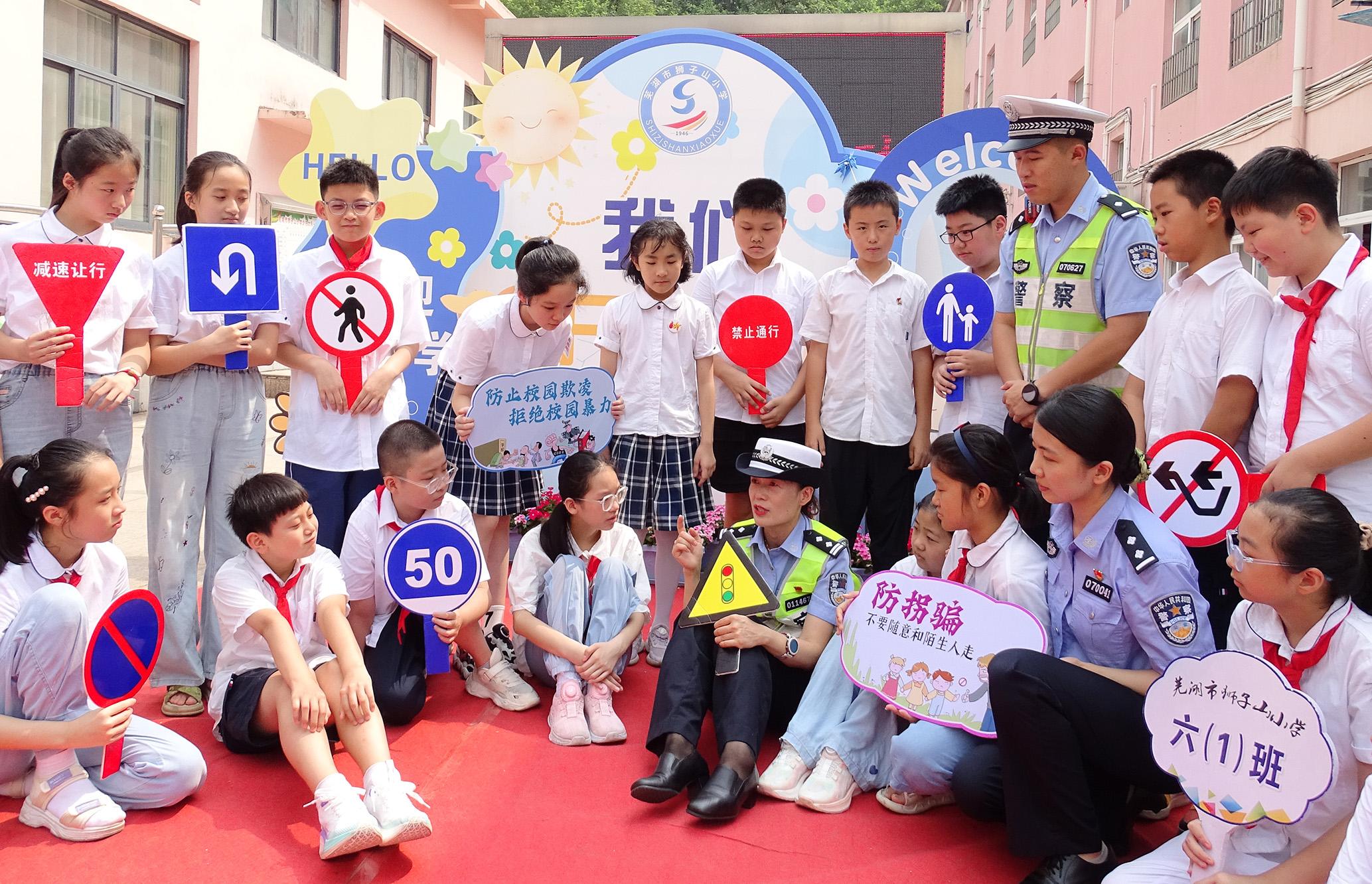 9月2日,安徽省蕪湖市公安局鏡湖分局赭山派出所聯(lián)合鏡湖交警大隊(duì)開展“開學(xué)第一課 法治伴‘童’行”活動(dòng)。