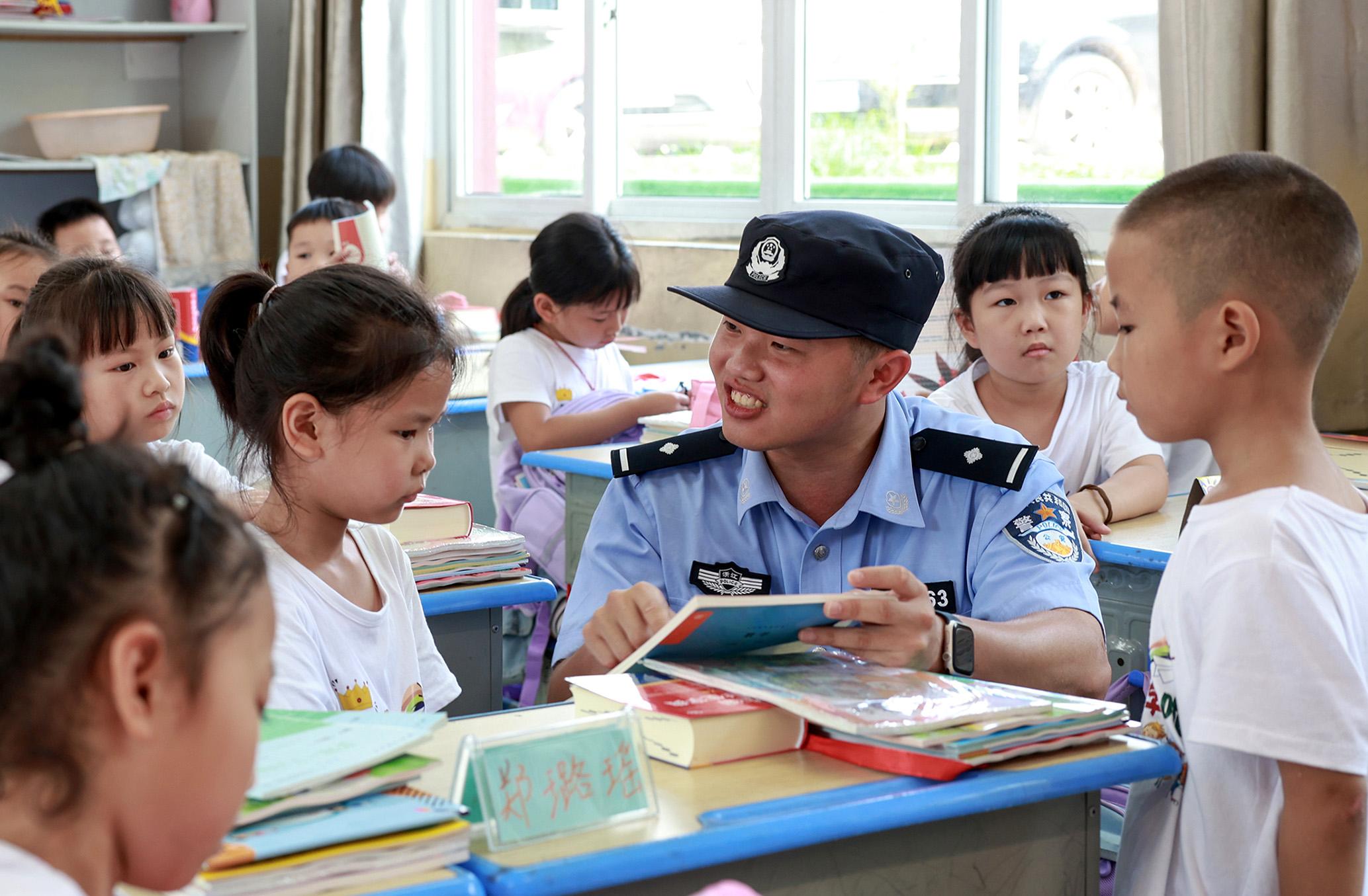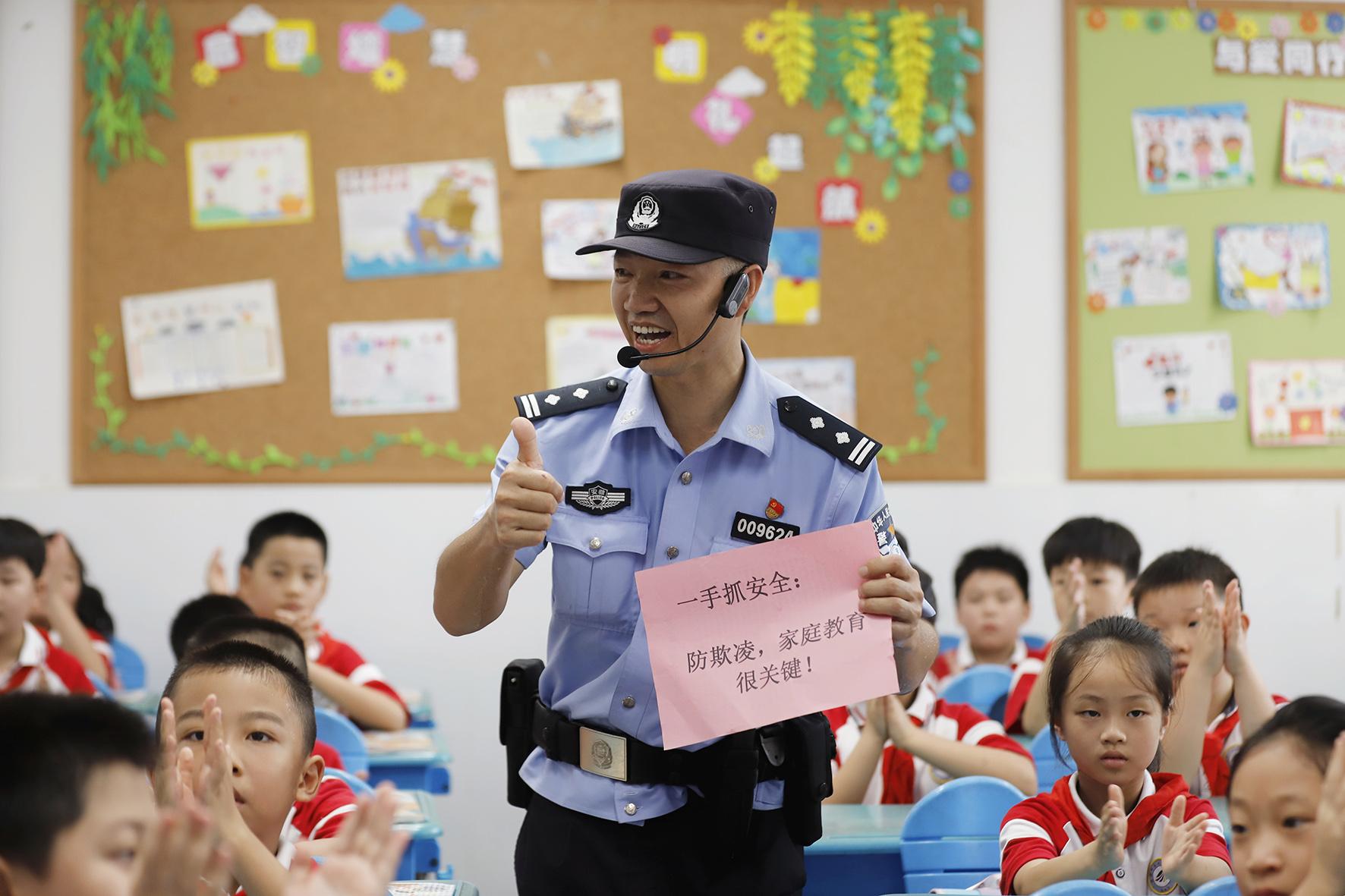 9月2日,浙江省臺(tái)州市公安局黃巖分局新前派出所民警來(lái)到新前小學(xué),給學(xué)生們上“開學(xué)安全課”。