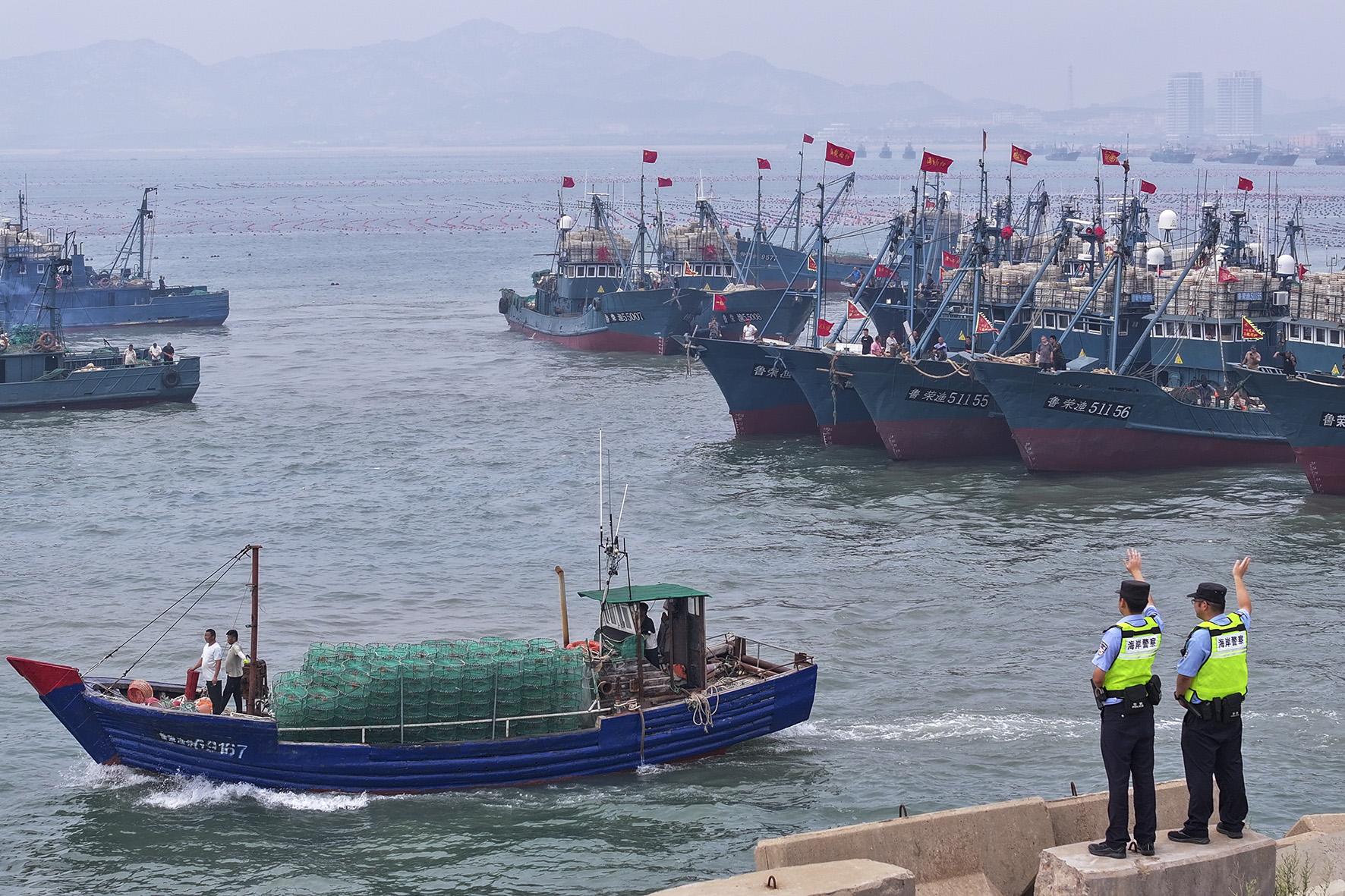 9月1日12時,我國黃渤海海域結(jié)束伏季休漁,山東半島地區(qū)漁船民喜迎開海。威海市公安局海岸警察支隊組織海岸民警加強漁港碼頭巡邏守護,協(xié)助漁政工作人員維護開?,F(xiàn)場秩序,為廣大漁船民喜迎秋捕豐收提供安全保障。